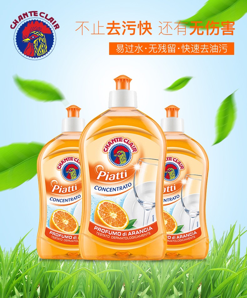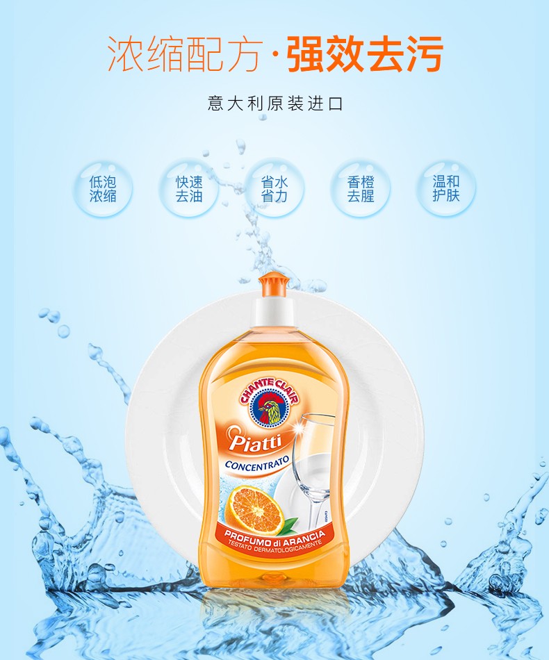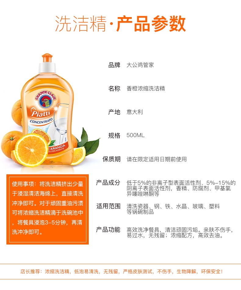 大公鸡 浓缩洗洁精(香橙)500ML*2瓶装 意大利