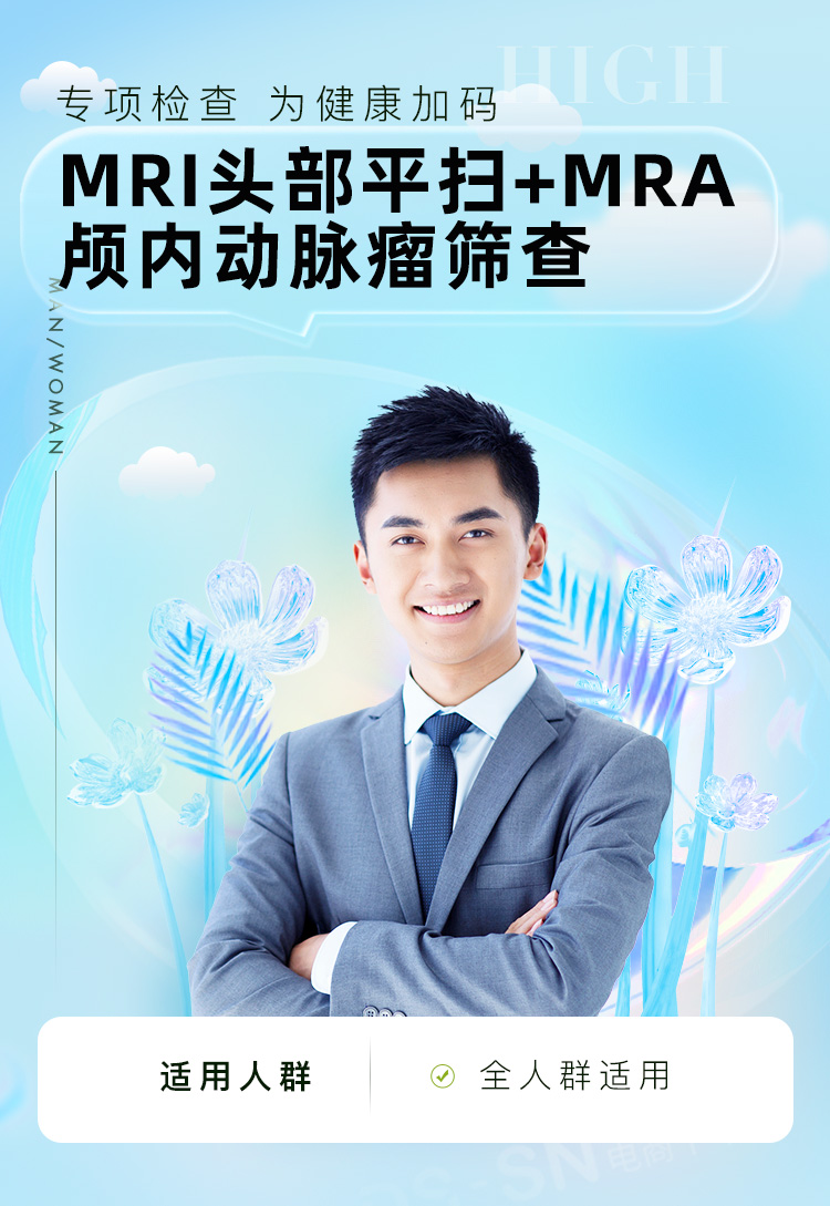 【爱康君安】MRI头部平扫+MRA颅内动脉瘤筛查 VIP尊享 高清晰