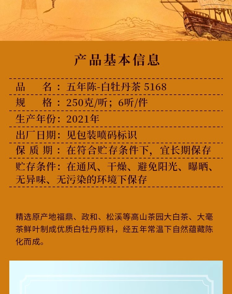 中粮-中茶 蝴蝶牌【五年陈】白牡丹5168 福鼎老白茶铁罐250克中粮出品