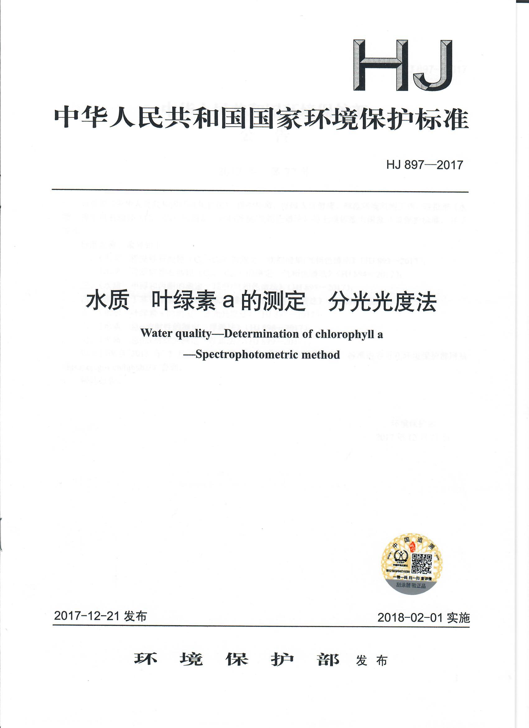 HJ 897-2017 水质 叶绿素a的测定 分光光度法