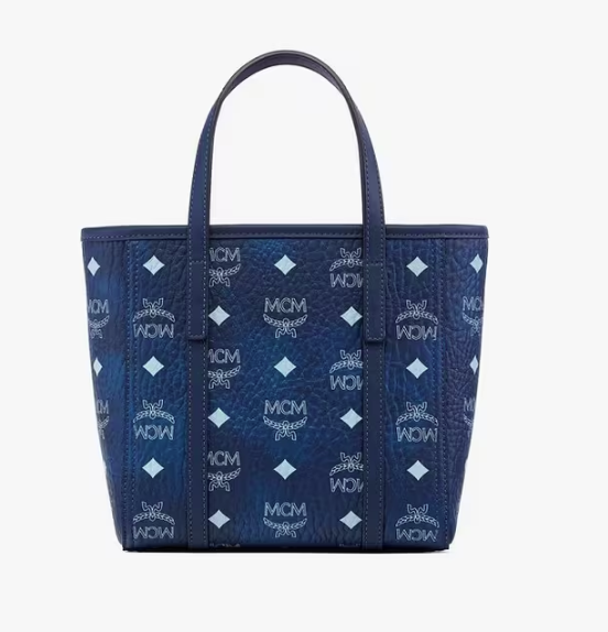 这款迷你Toni购物袋采用蓝色Visetos人造革及天然Nappa皮革制成,其几何造型兼具经典优雅的气质与卓越的实用型。超细纤维麂皮衬里内部饰有一个以慕尼黑巴伐利亚钻石为灵感的皮革贴饰,顶部拉链闭合设计则确保了财物的安全。
