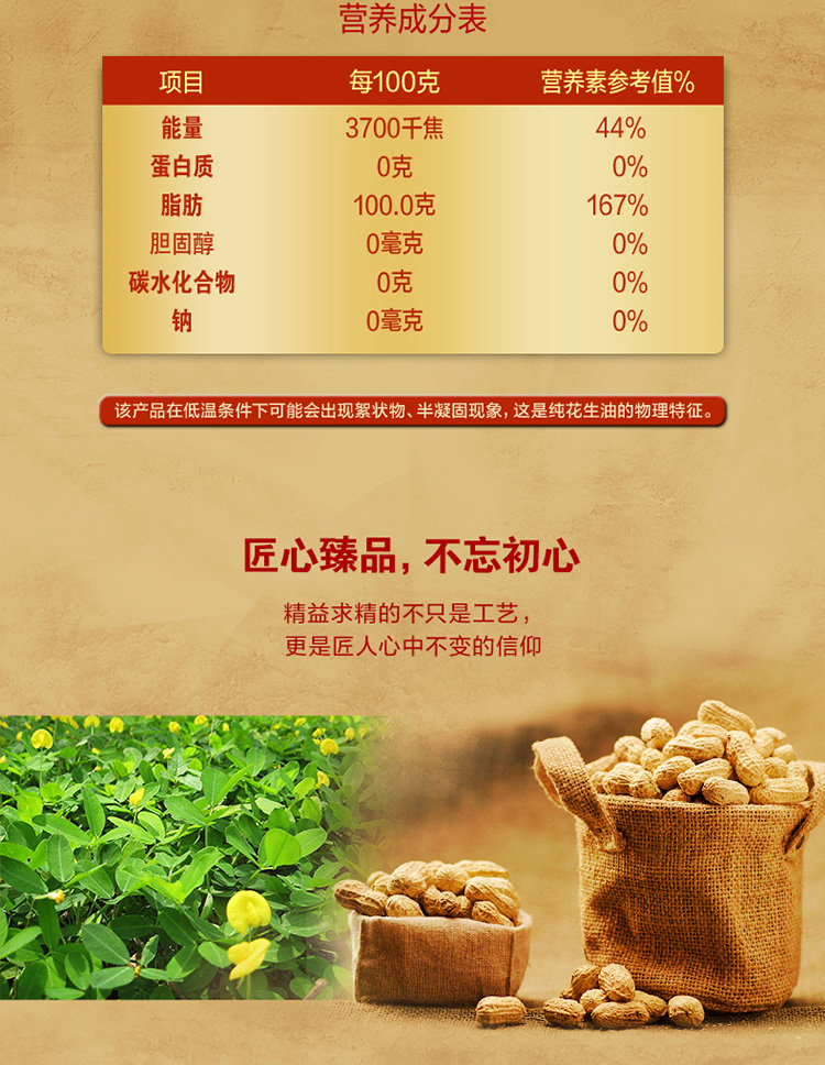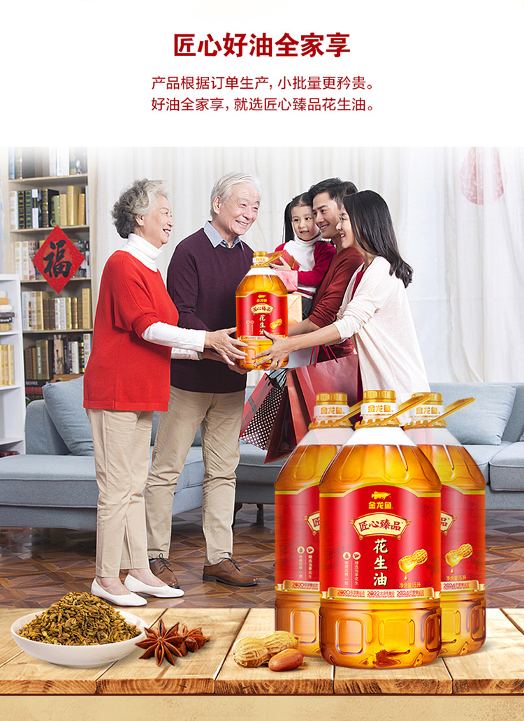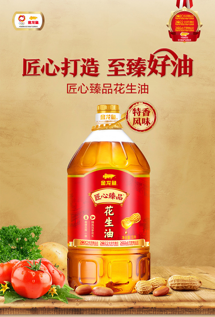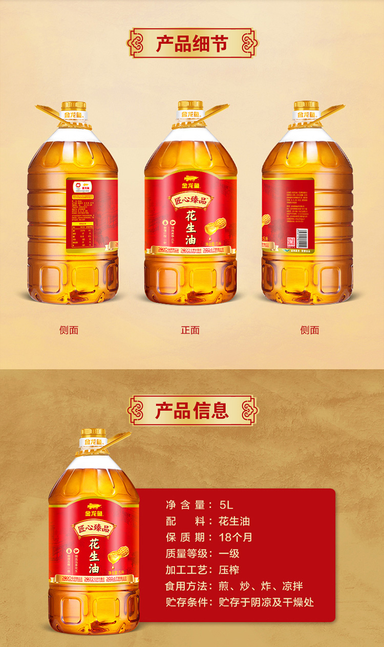 【自营】金龙鱼匠心臻品花生油5L