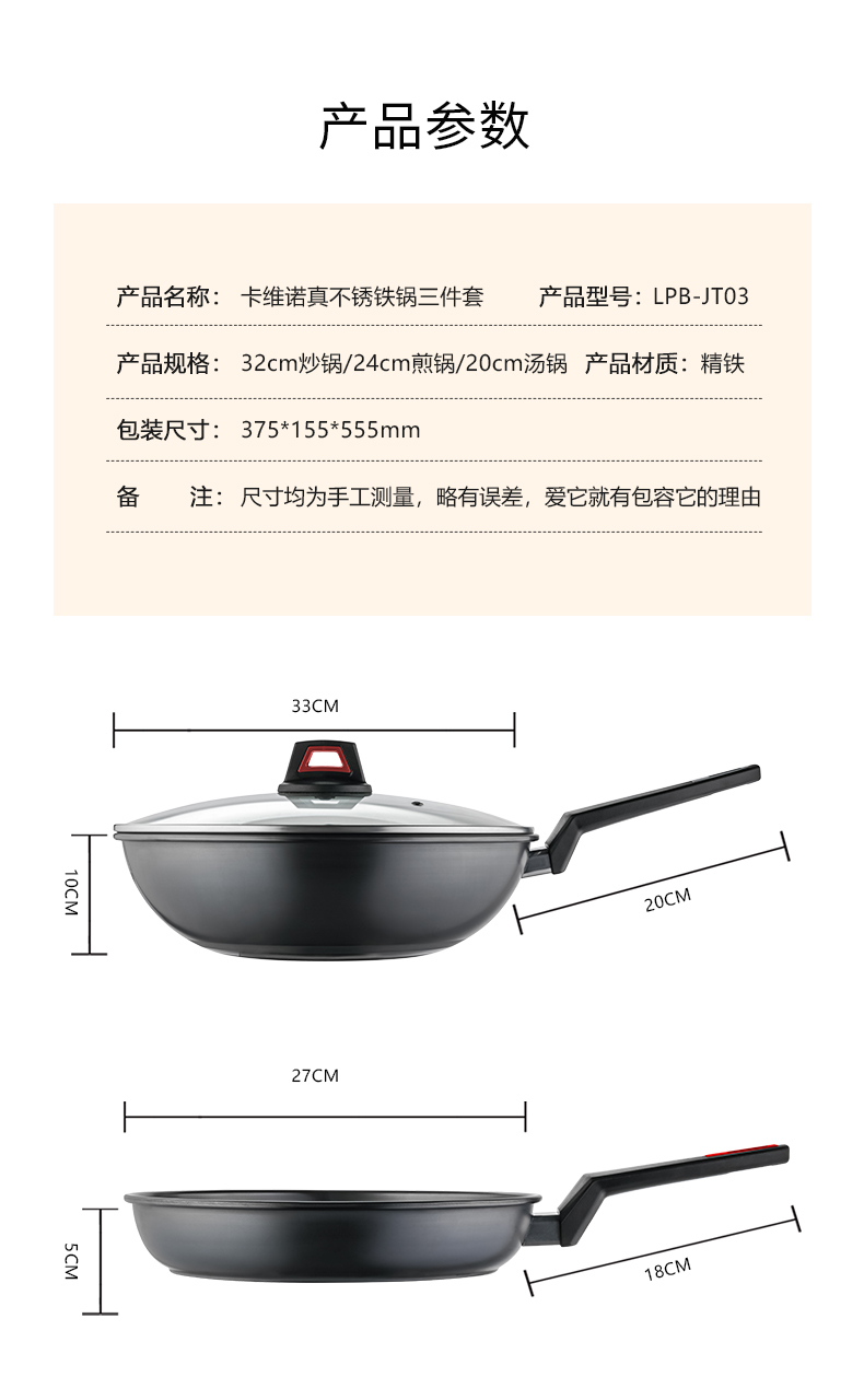 康巴赫 LPB-JT03卡维诺真不锈铁锅三件套(商品不支持无理由退货)