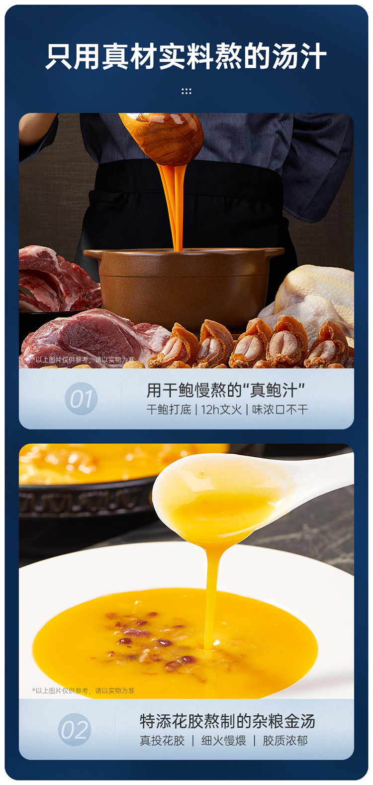 【限时特惠】家宴料理加热即食 鲍汁原片厚花胶、金汤野米扣花胶筒、慢熬溏心吉品鲍