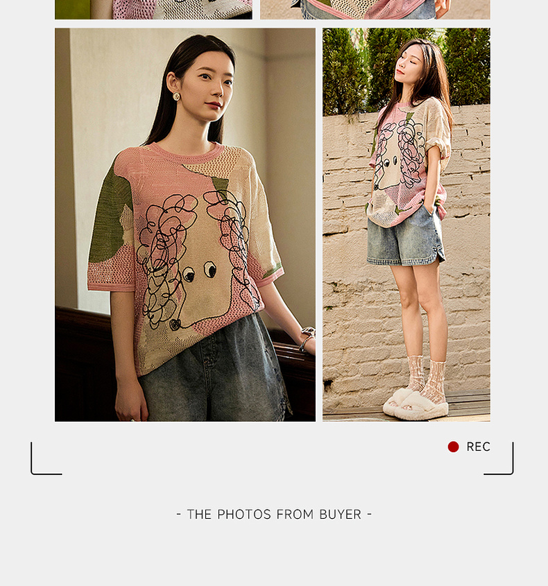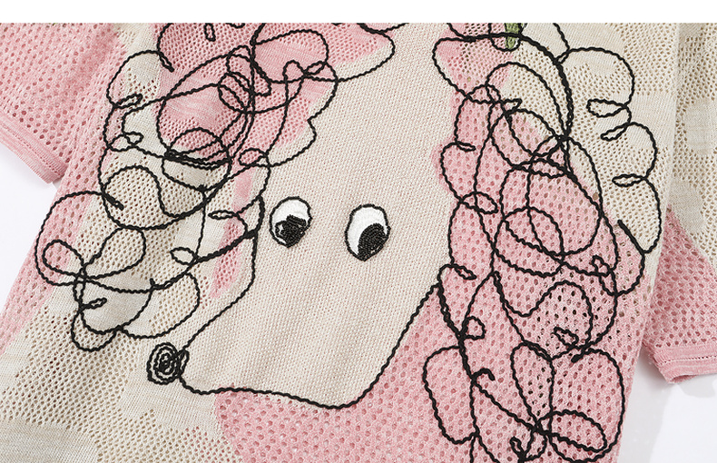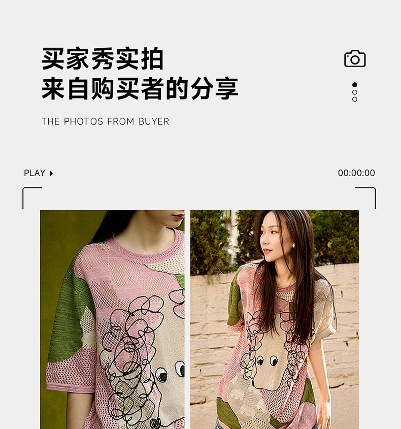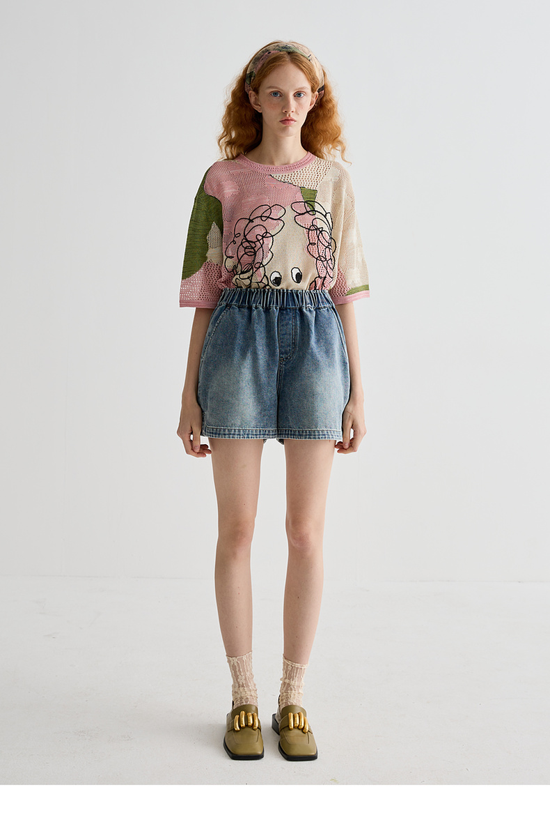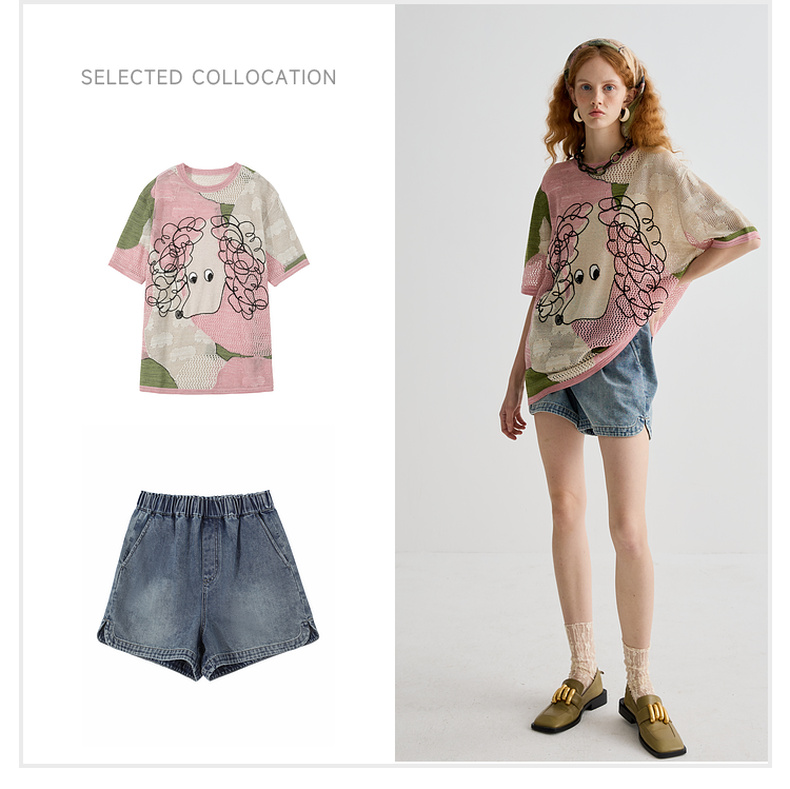谜底针织衫短袖女2025夏季新品复古文艺大廓形H型长毛衣252MZ0876