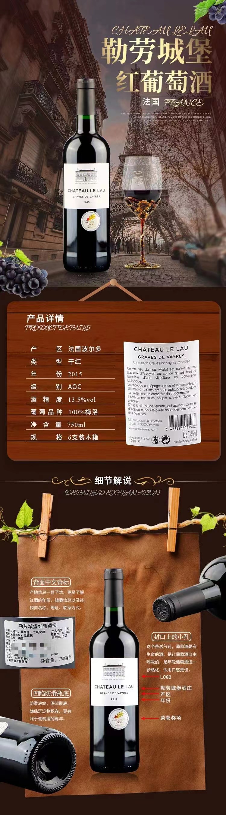 法国波尔多勒劳城堡红葡萄酒(单支)