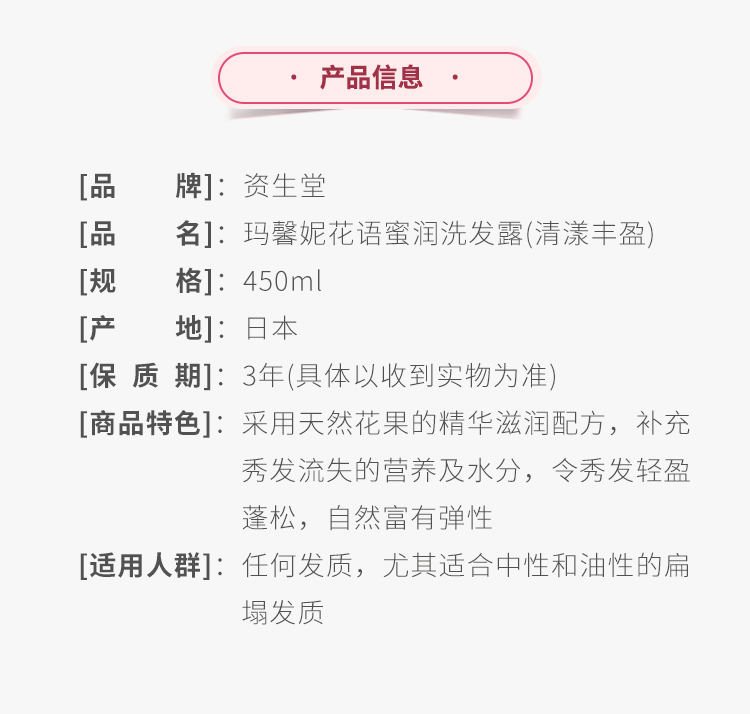 玛馨妮 花语蜜润洗发露(清漾丰盈) 450ml