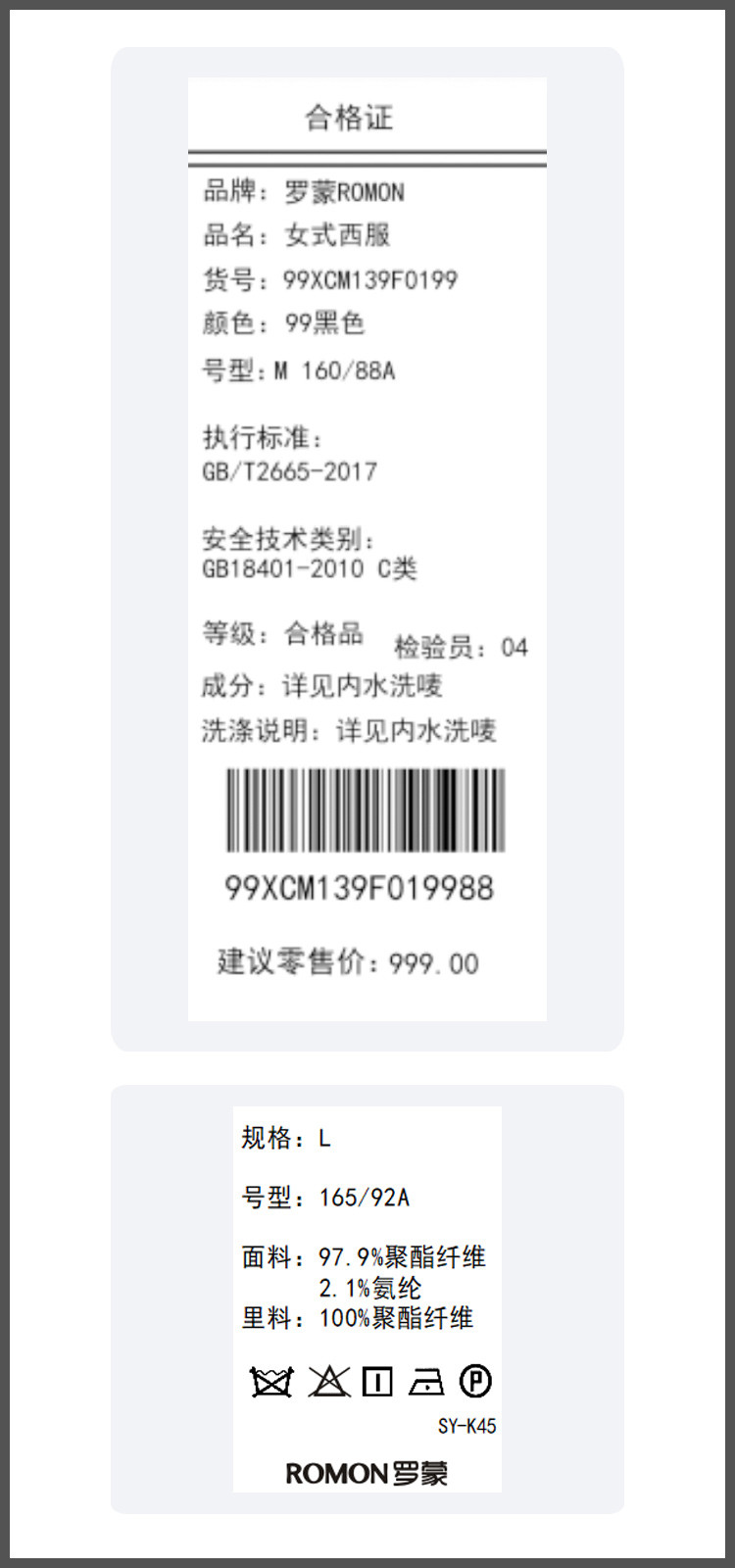 面料:97.9%聚酯纤维 2.1%氨纶