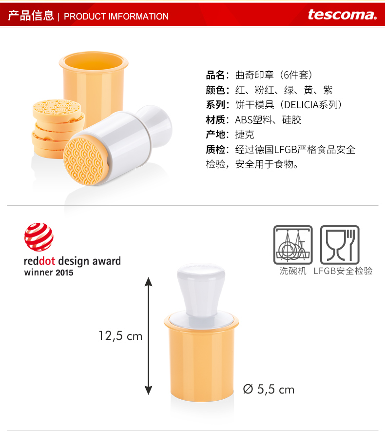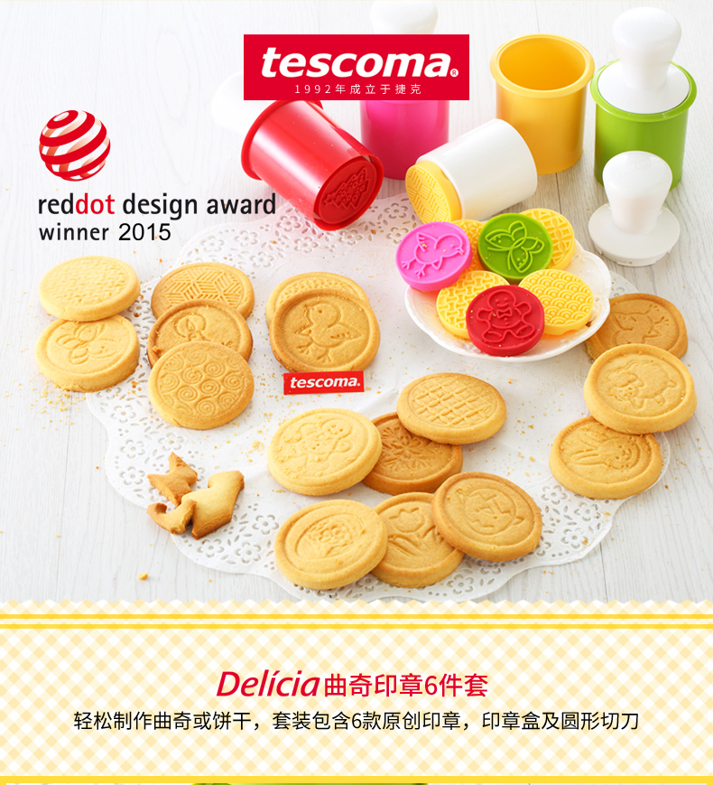 Tescoma圣诞节曲奇印章6件套卡通曲奇饼干月饼模具