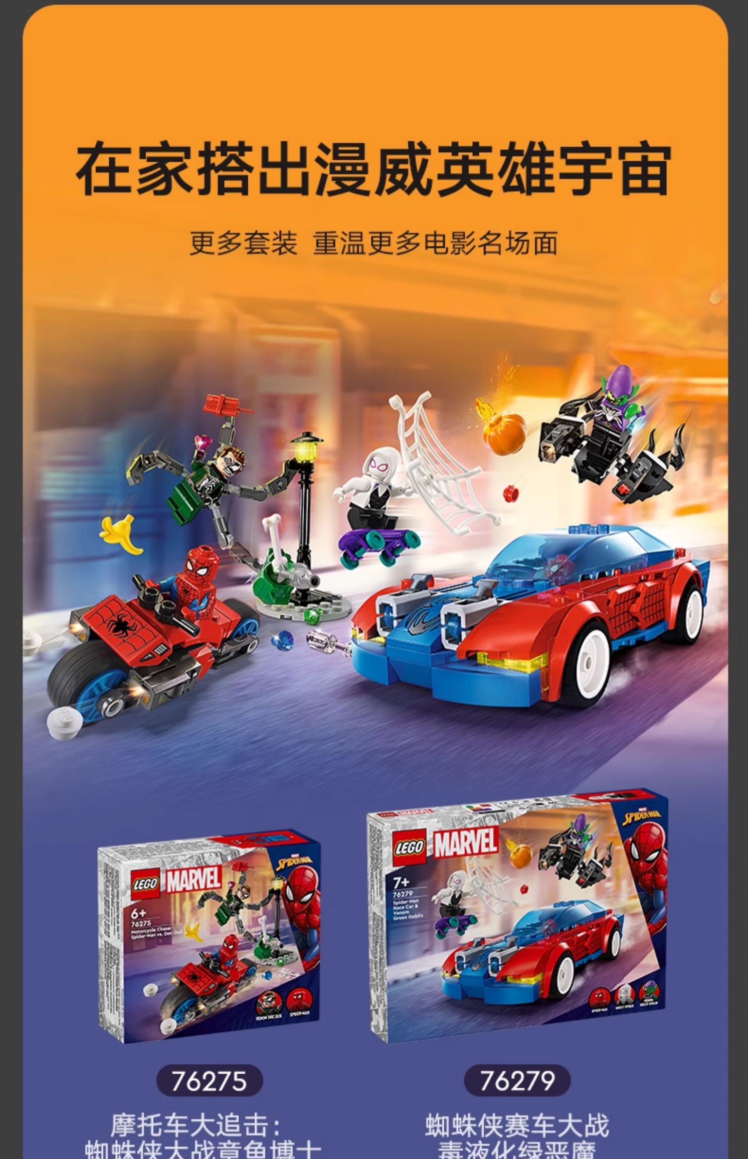 乐高积木L76279超级英雄系列蜘蛛侠战车大战毒液