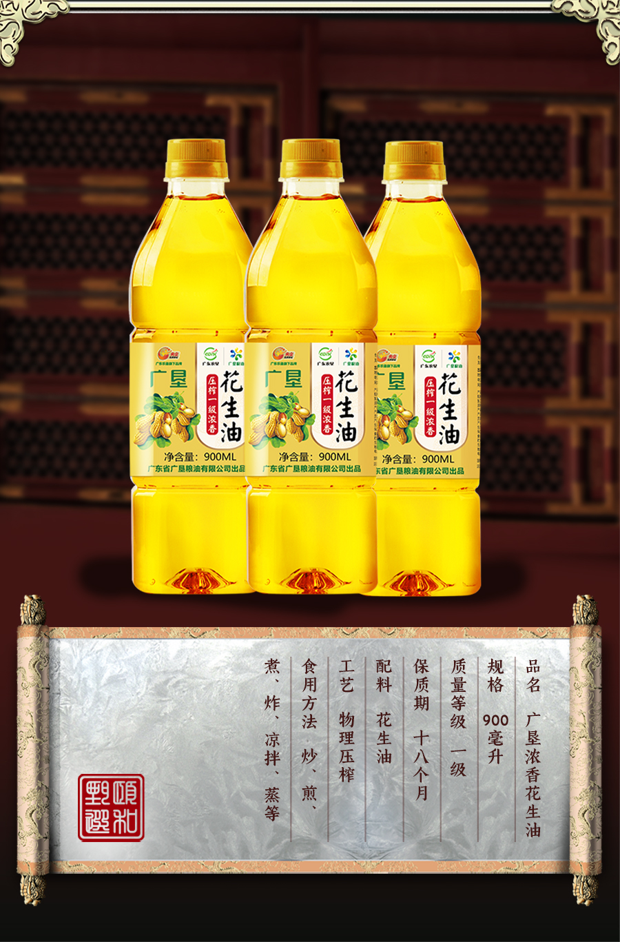 【广垦优品】广垦压榨一级浓香花生油900ml