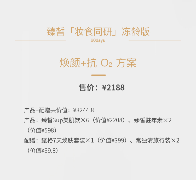【已下架】臻皙 3UP美肌饮6盒+驻年素2盒(赠甄格7天焕肤1套+常独清旅行装2盒) [F类]