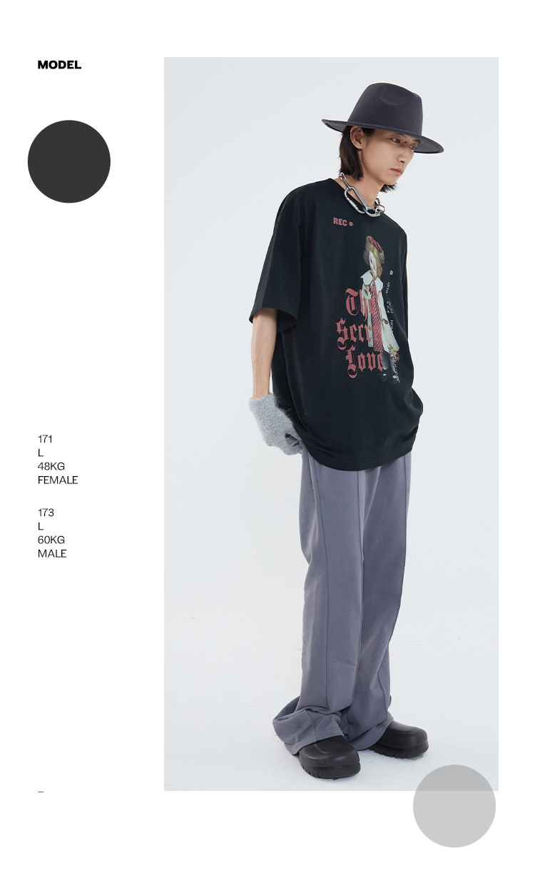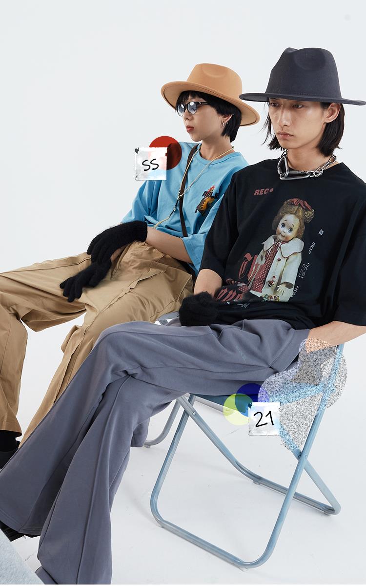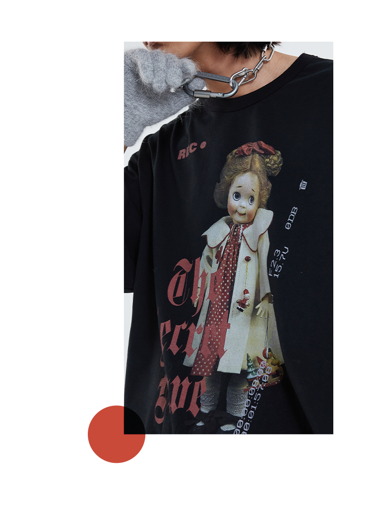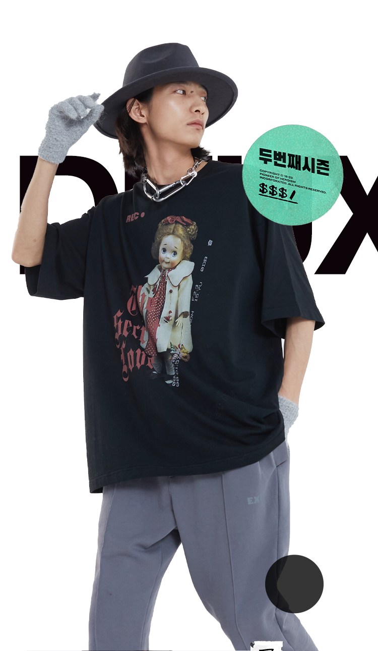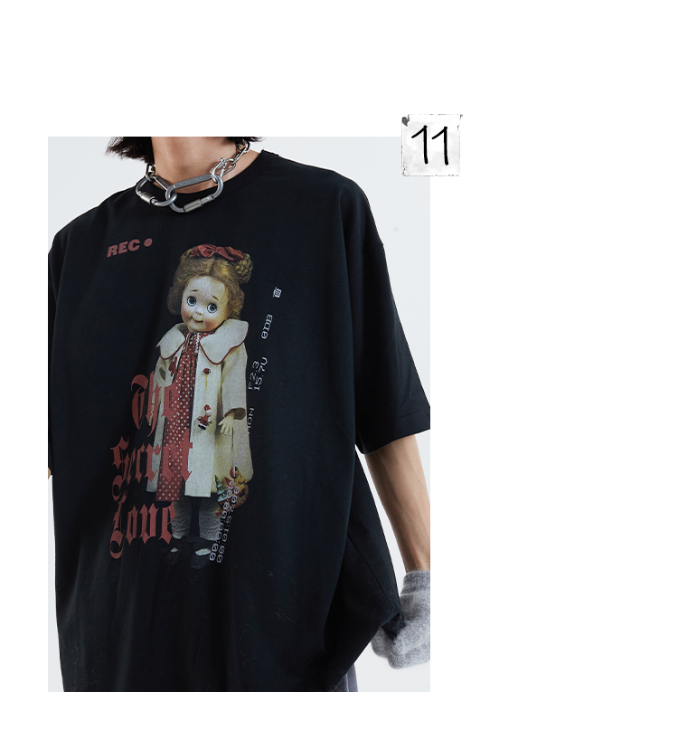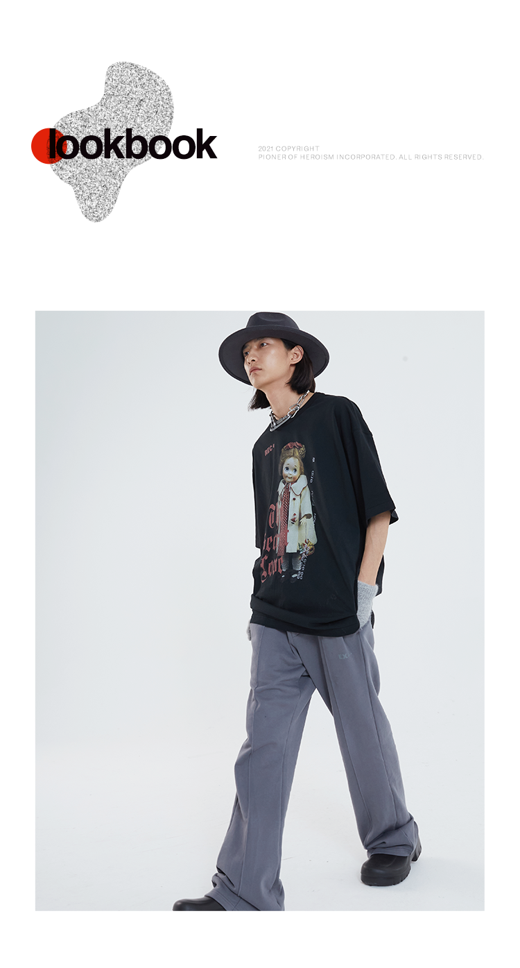 POH 「秘密的爱」洋娃娃印花休闲宽松落肩短袖T恤男夏季潮牌半袖