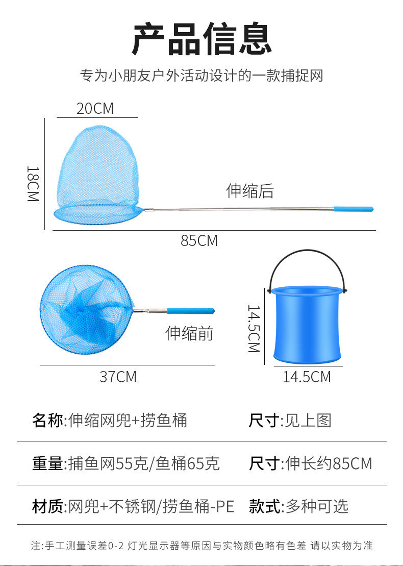 【曼龙严选】可伸缩捞鱼网+可折叠桶18.8元到手3套💰福利秒❗️儿童小抄网户外亲子捞鱼网 不锈钢可伸缩钓鱼彩色 儿童迷你捕虫网 单个渔网
