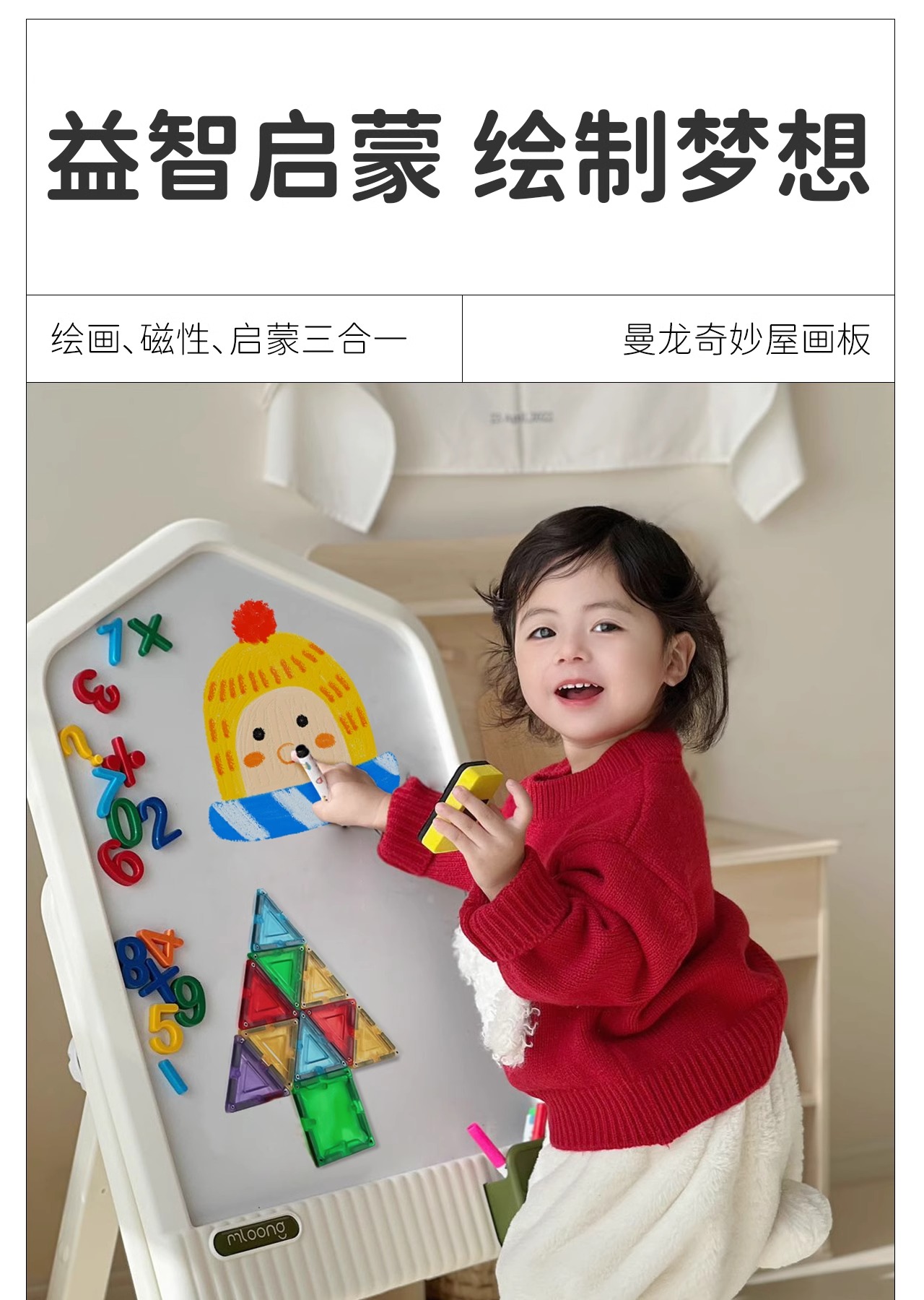 【冬日暖拥】mloong曼龙儿童画板支架式磁性写字黑白板奇妙屋画板