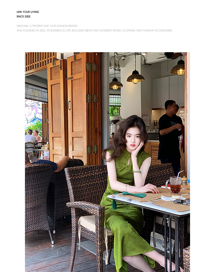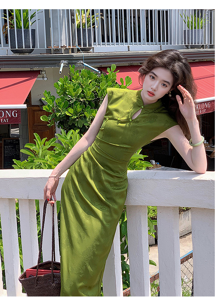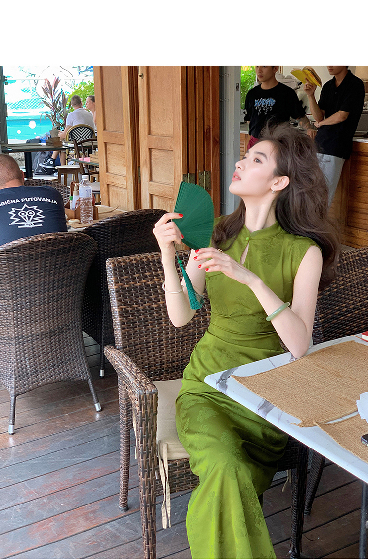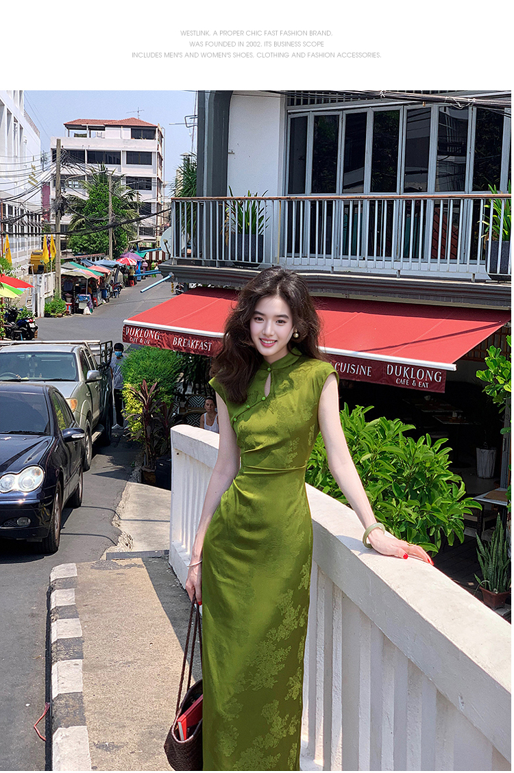 西遇新中式改良旗袍女夏季新款提花水滴领修身无袖连衣裙SS150342