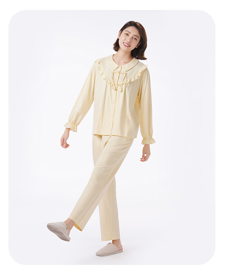 都市丽人睡衣好睡好眠长袖家居服单面无尘棉薄女士棉质套装LHT1T8