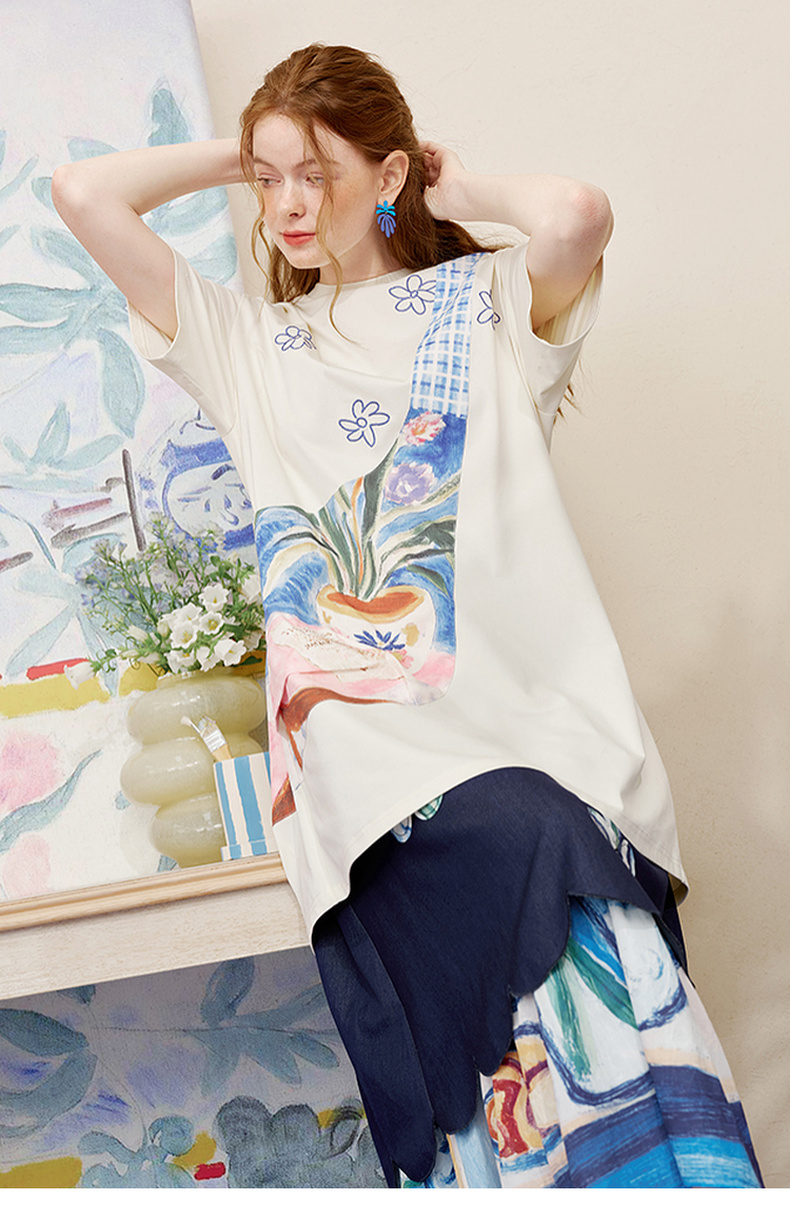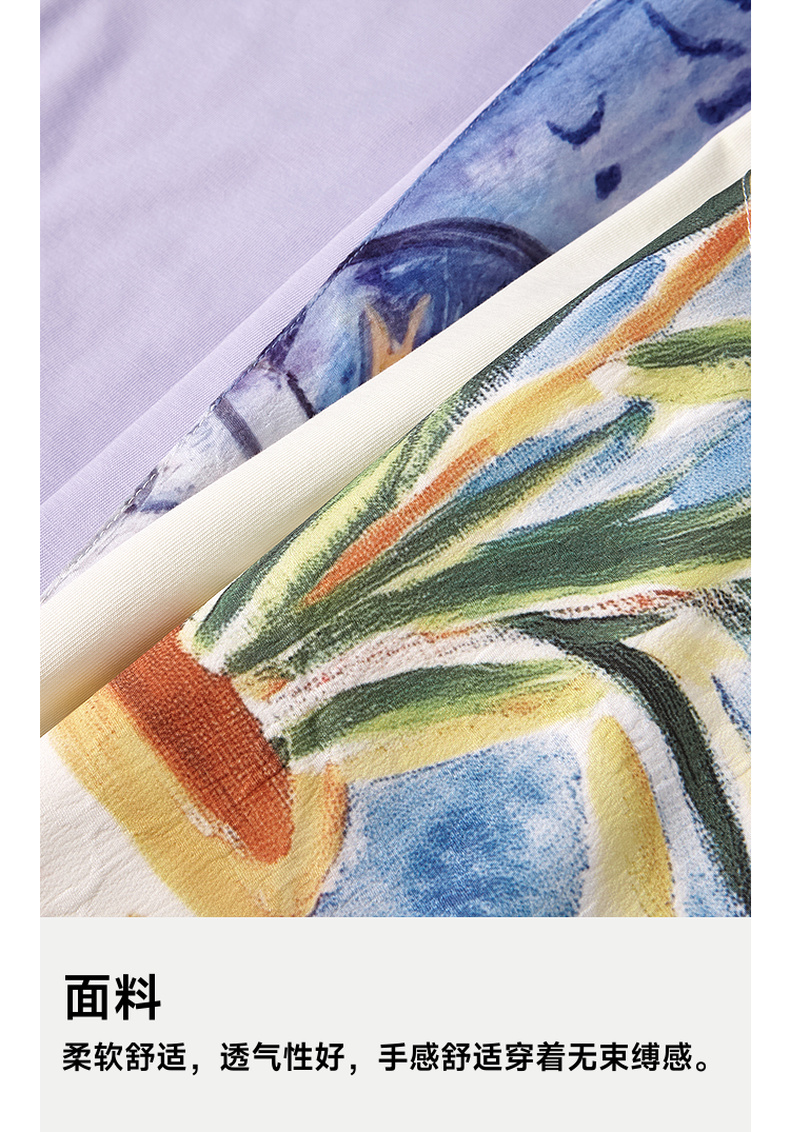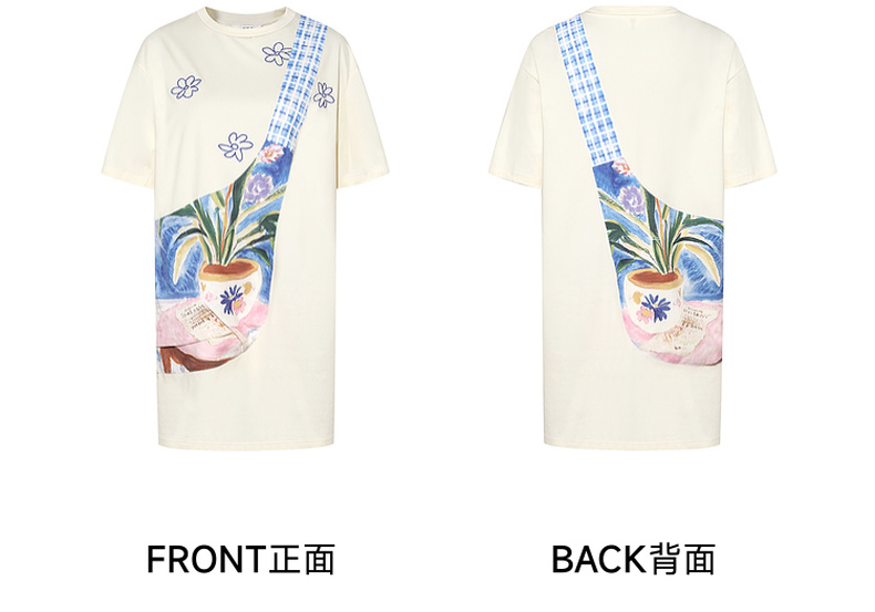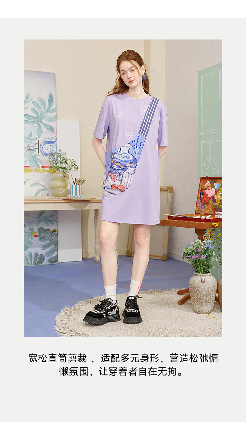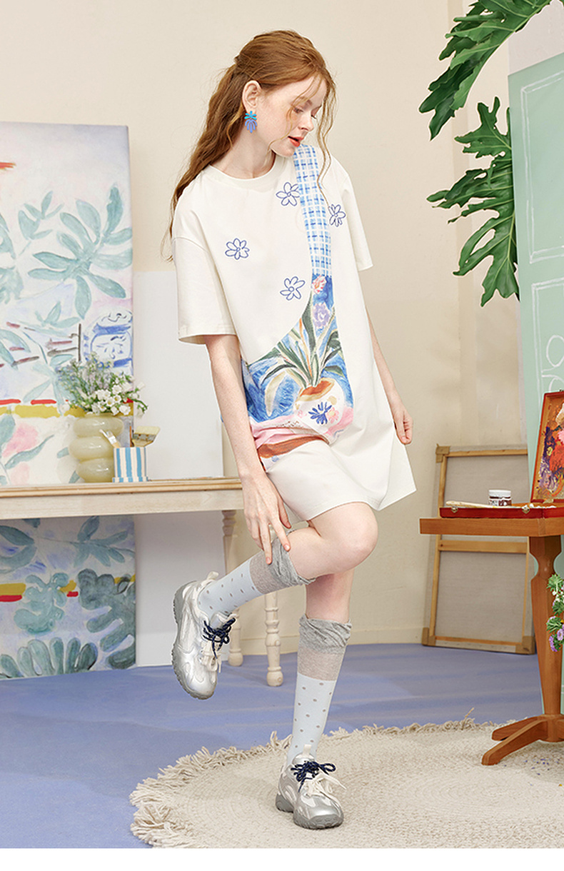 两三事 盛满仲夏 2025夏季新款时尚印花斜挎口袋拼接t恤裙连衣裙