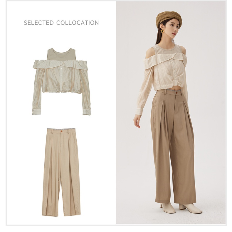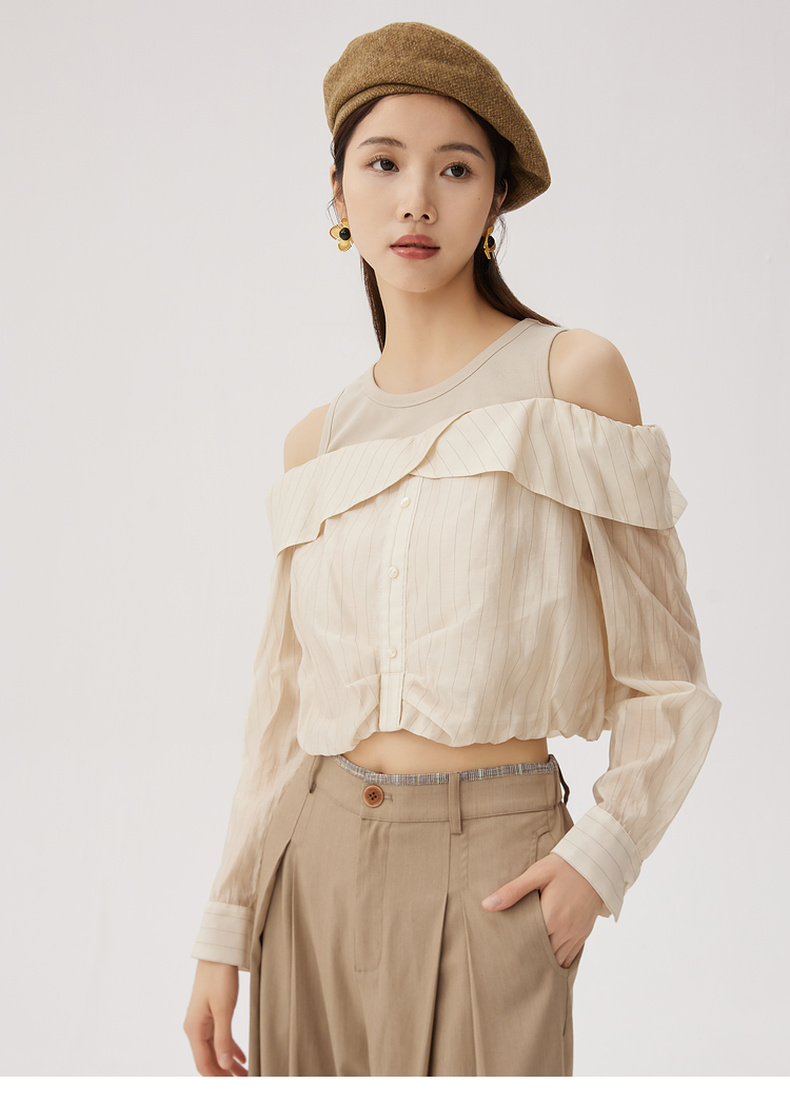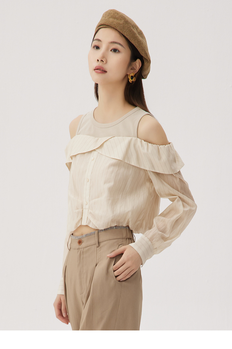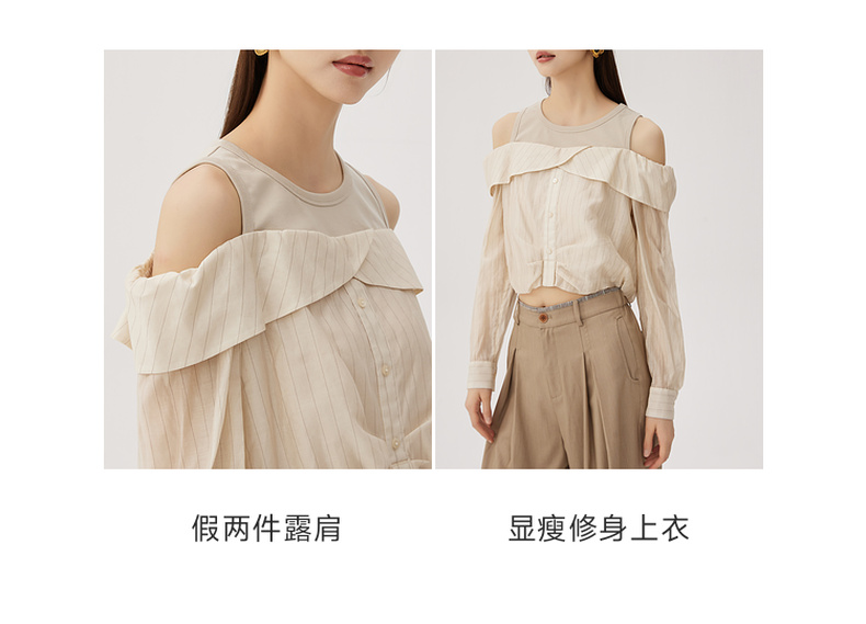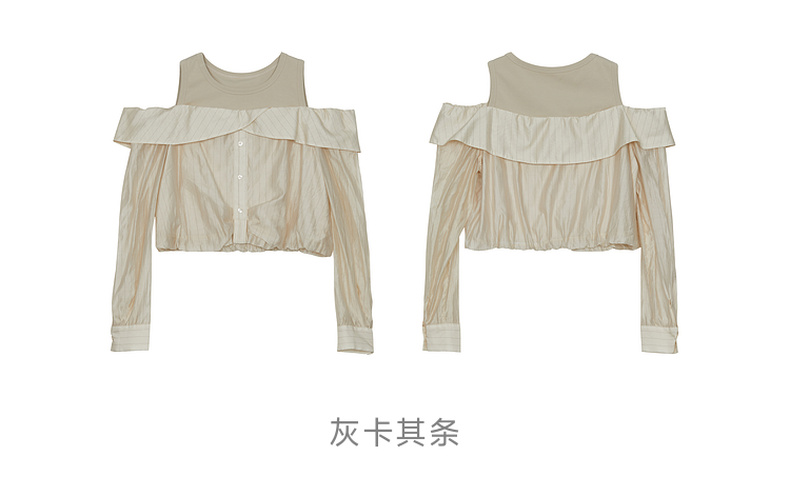 谜底露肩上衣长袖女士2024秋季新品复古通勤气质短衬衫243MS0977