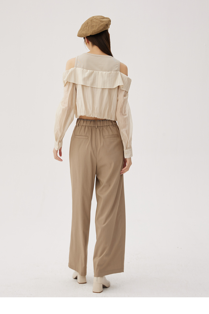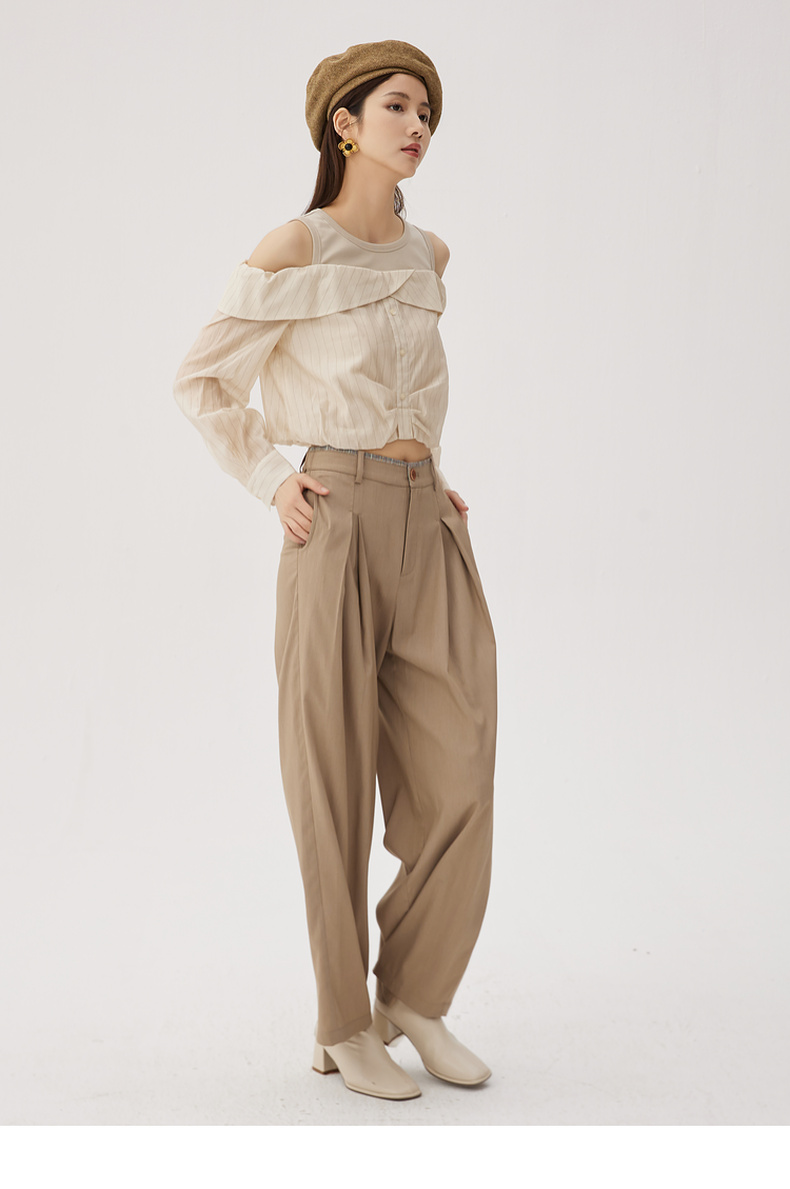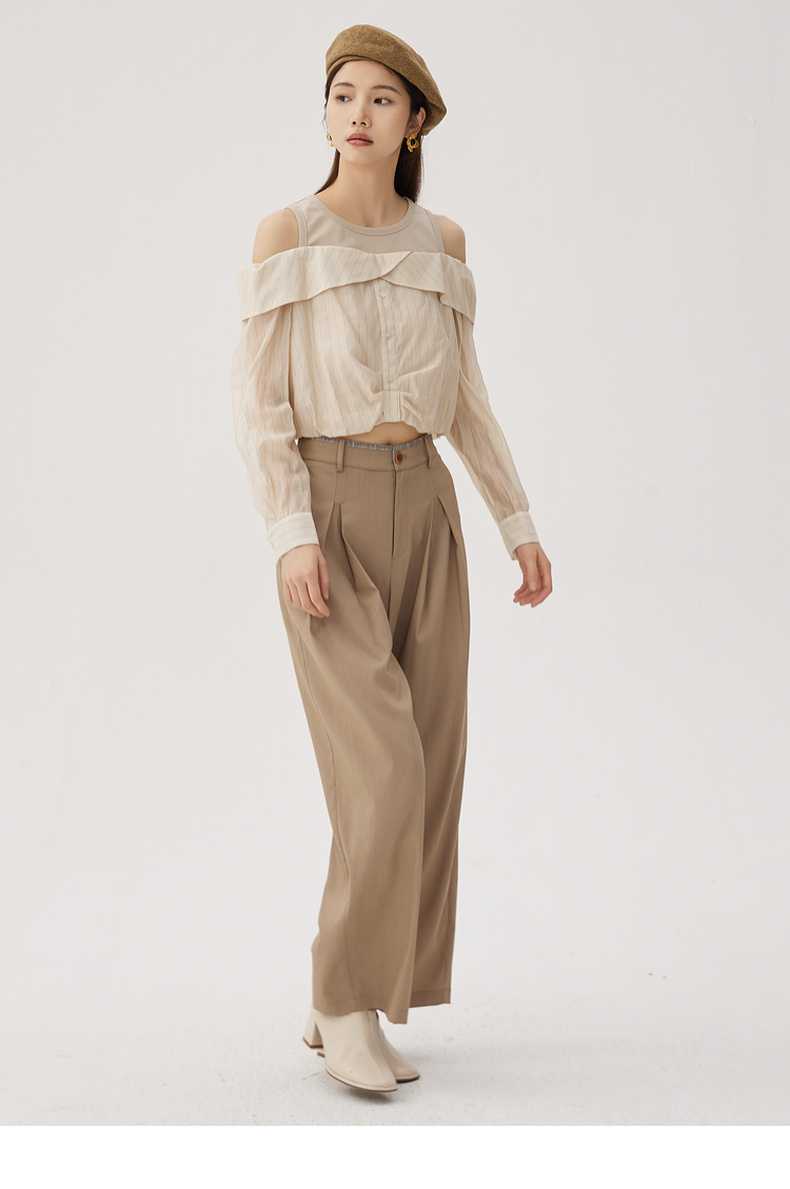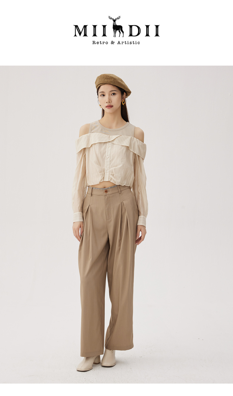 谜底露肩上衣长袖女士2024秋季新品复古通勤气质短衬衫243MS0977
