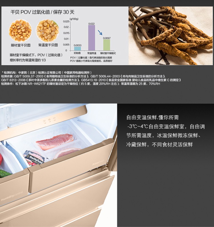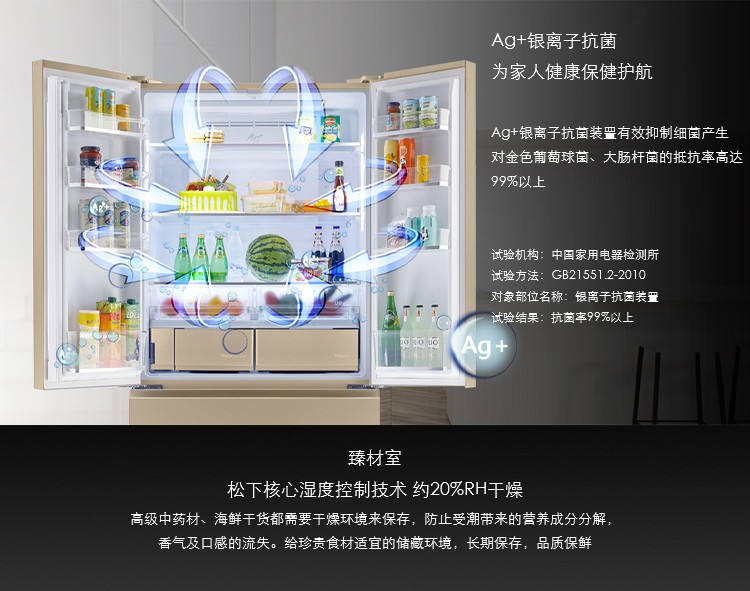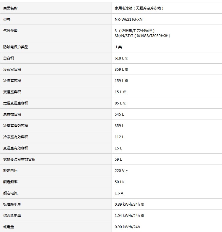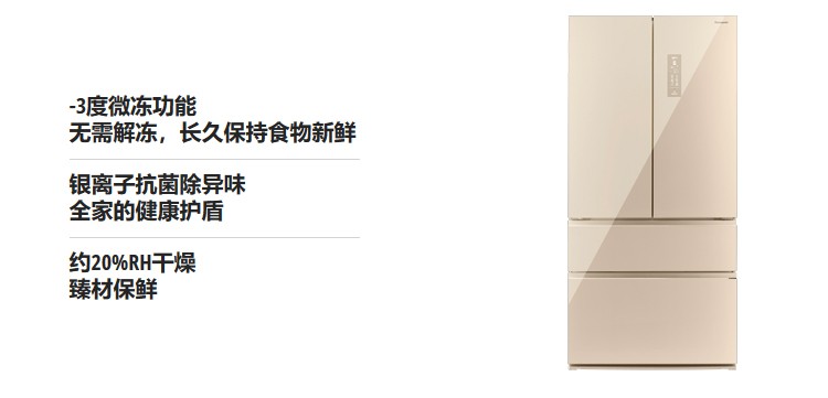【国补15%】松下NR-W621TG-XN 618升 干湿分储 风冷无霜 银离子杀菌,自动制冰,-3℃微冻,电冰箱