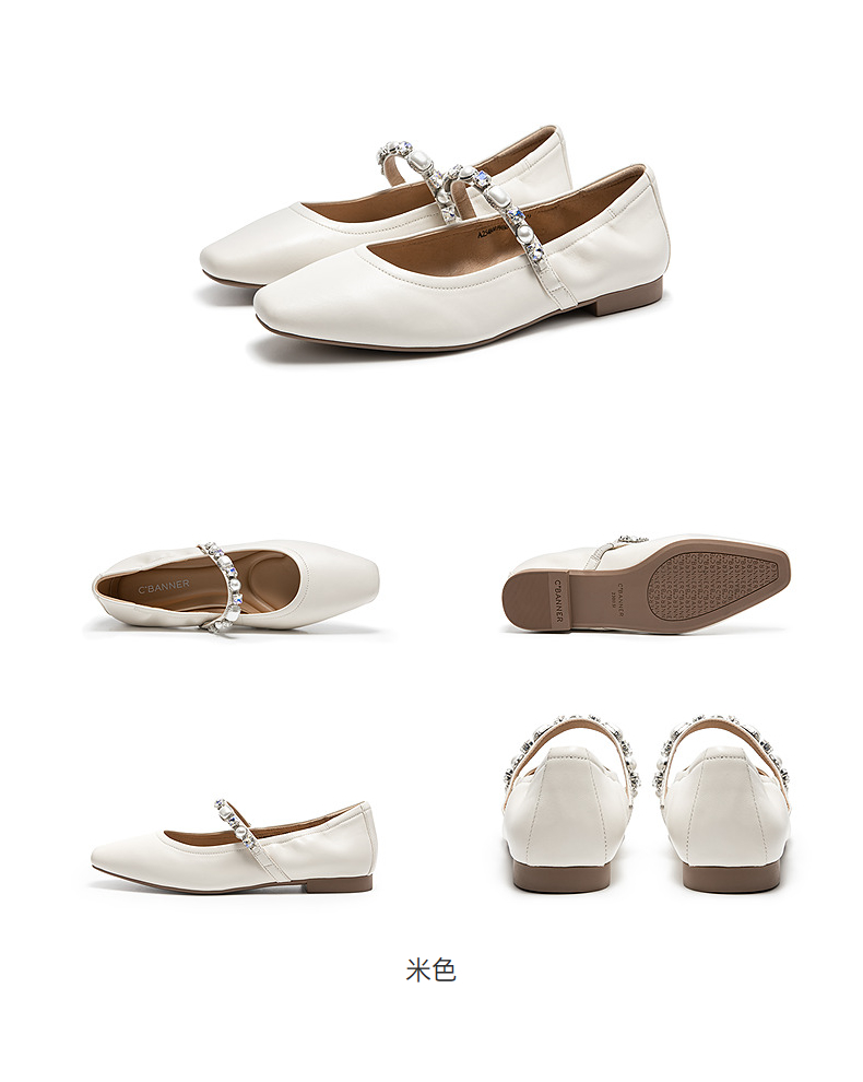 千百度低跟珍珠玛丽珍鞋女羊皮平底晚晚鞋浅口单鞋A25480059
