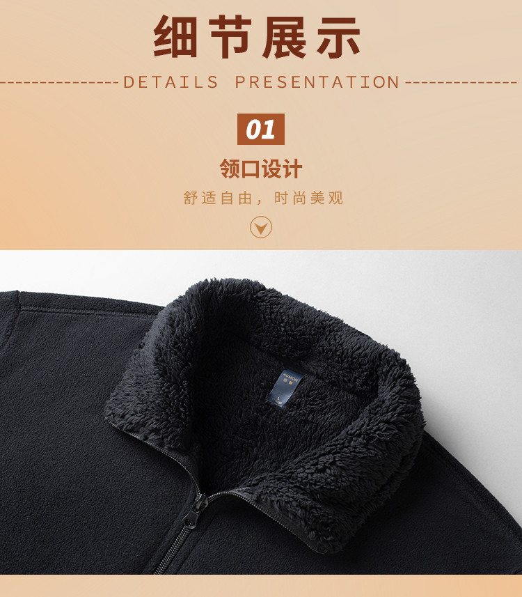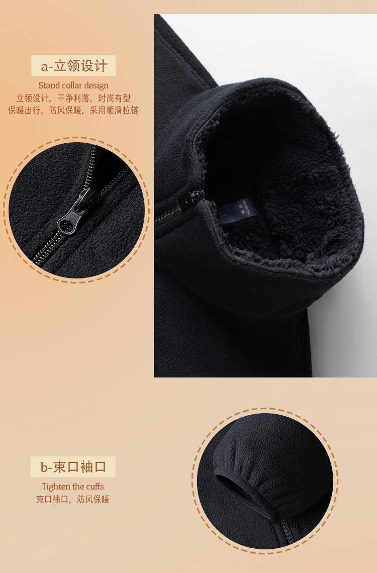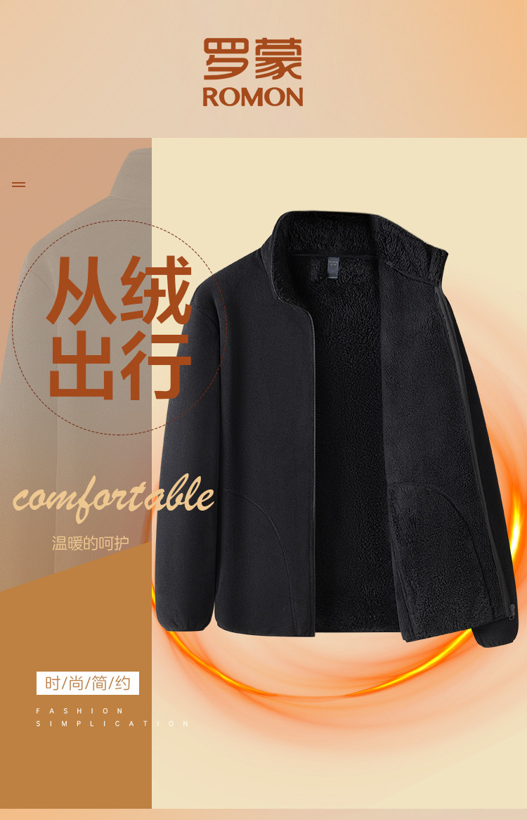 【加绒加厚】罗蒙秋冬摇粒绒外套男士加绒保暖立领夹克抓绒衣抓绒外套
