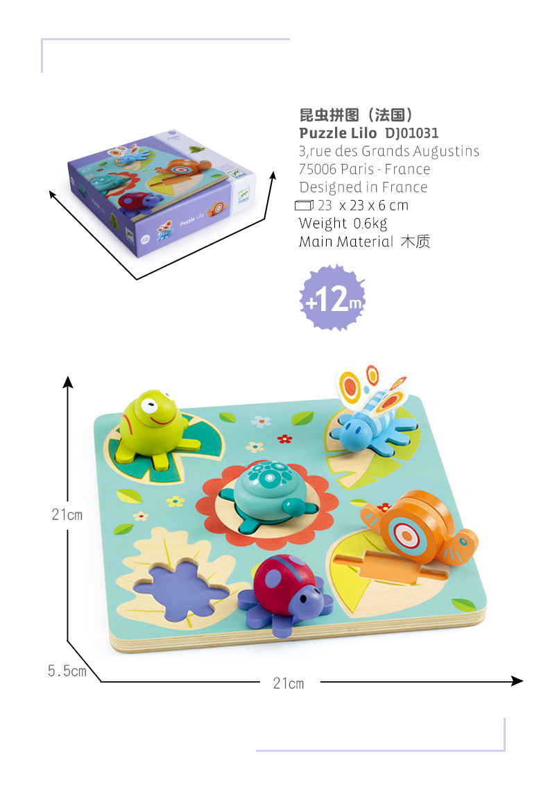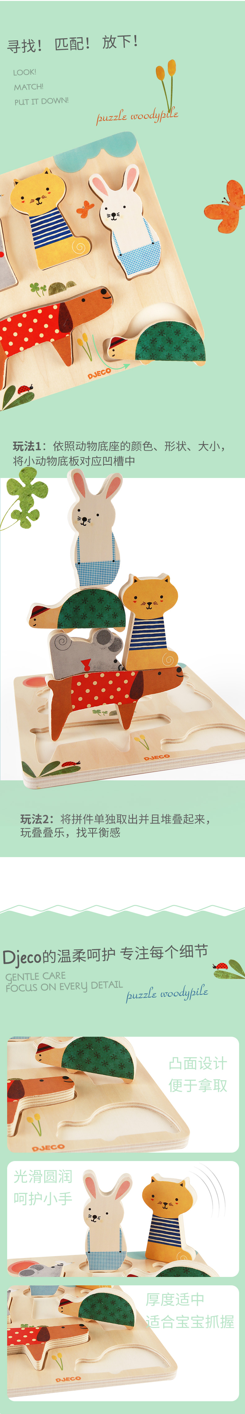DJECO低龄大块木质拼图(TG-YY)