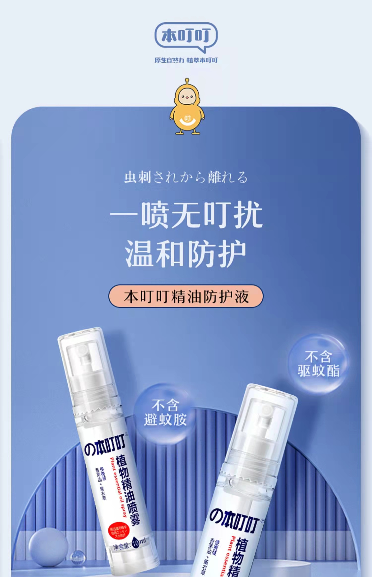の本叮叮植物精油喷雾防蚊精油驱蚊婴儿童户外家用宝宝止痒驱蚊