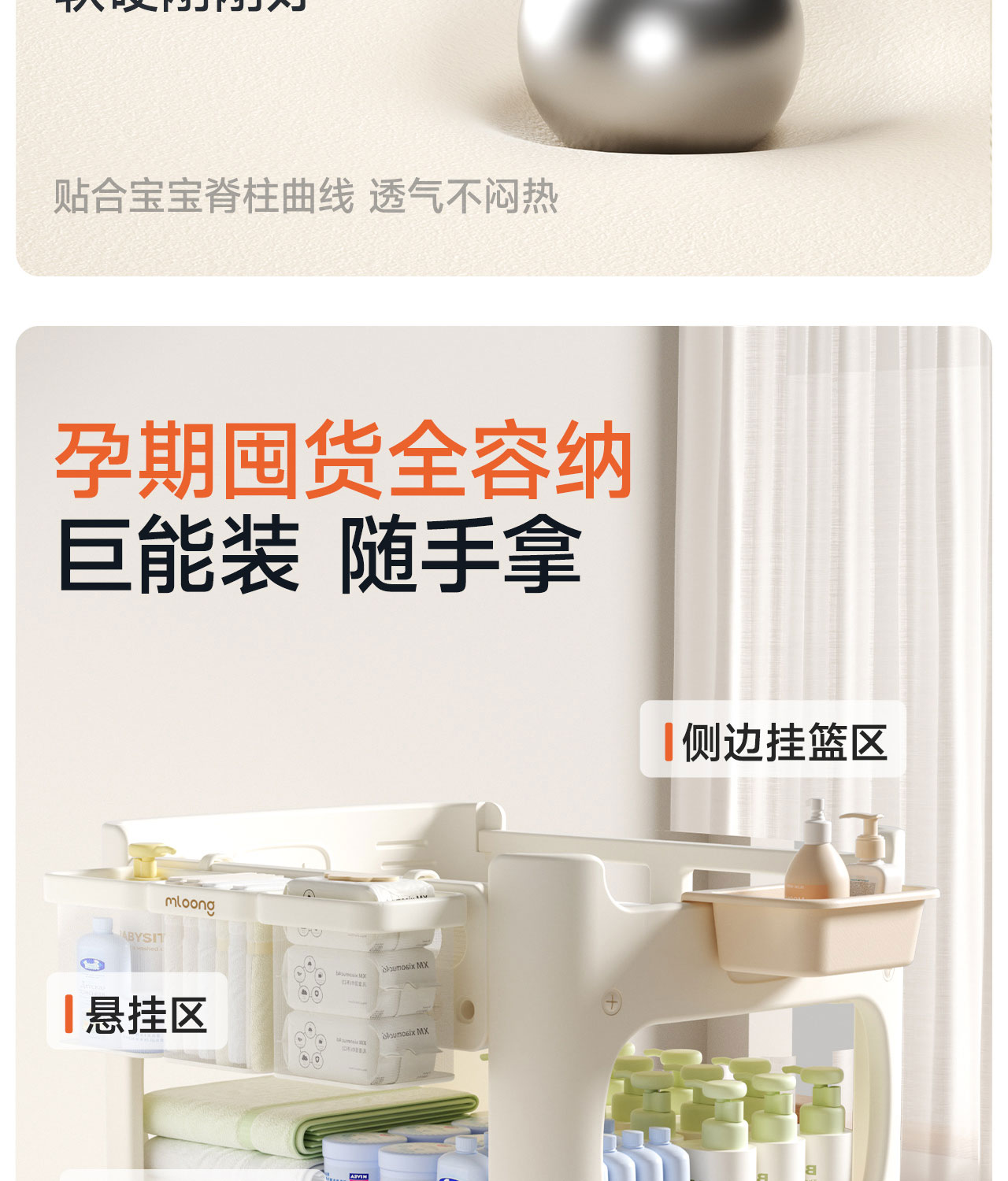 【冬日暖佣】mloong曼龙 安阔宝宝尿布台多功能洗澡一体护理台新生家用收纳可移动婴儿床