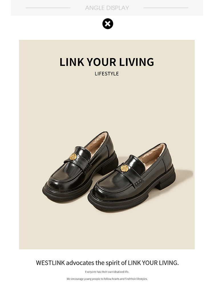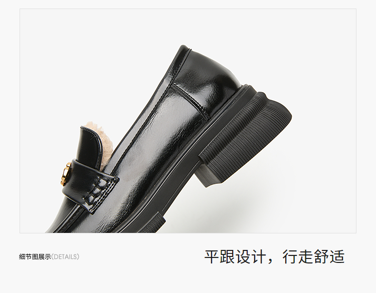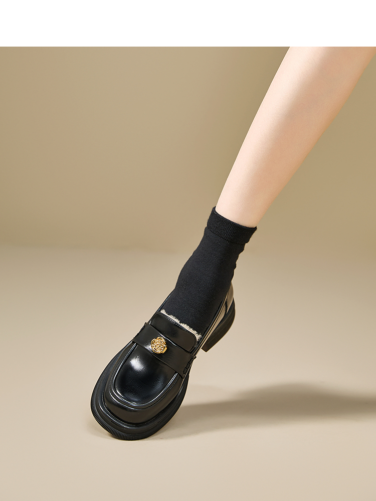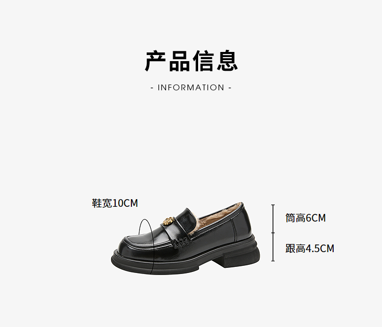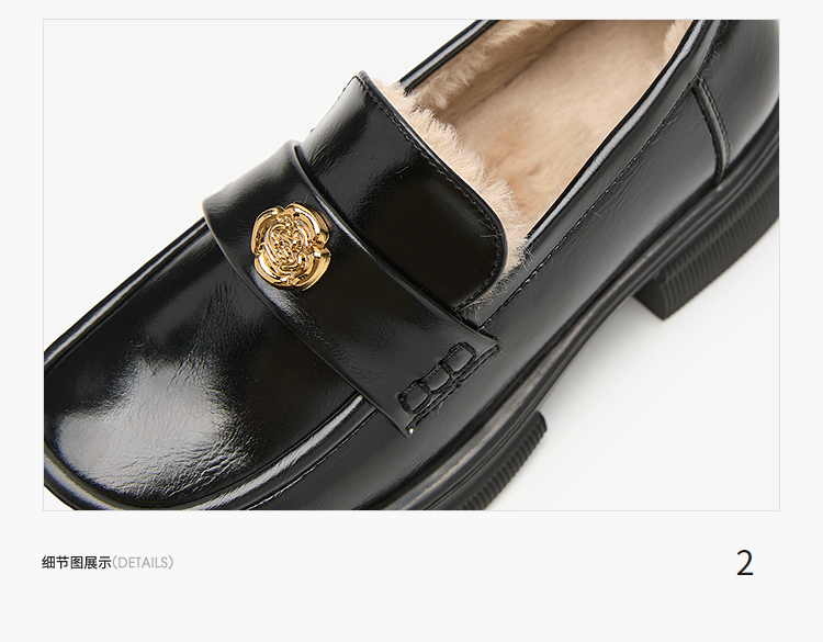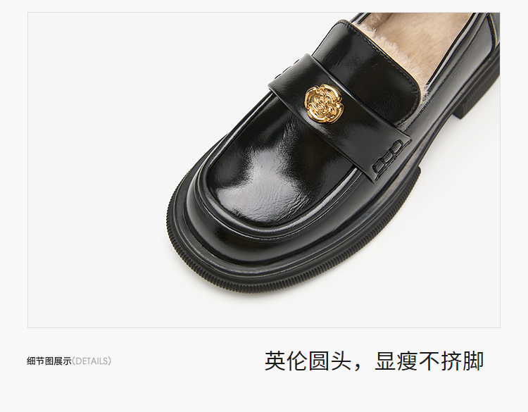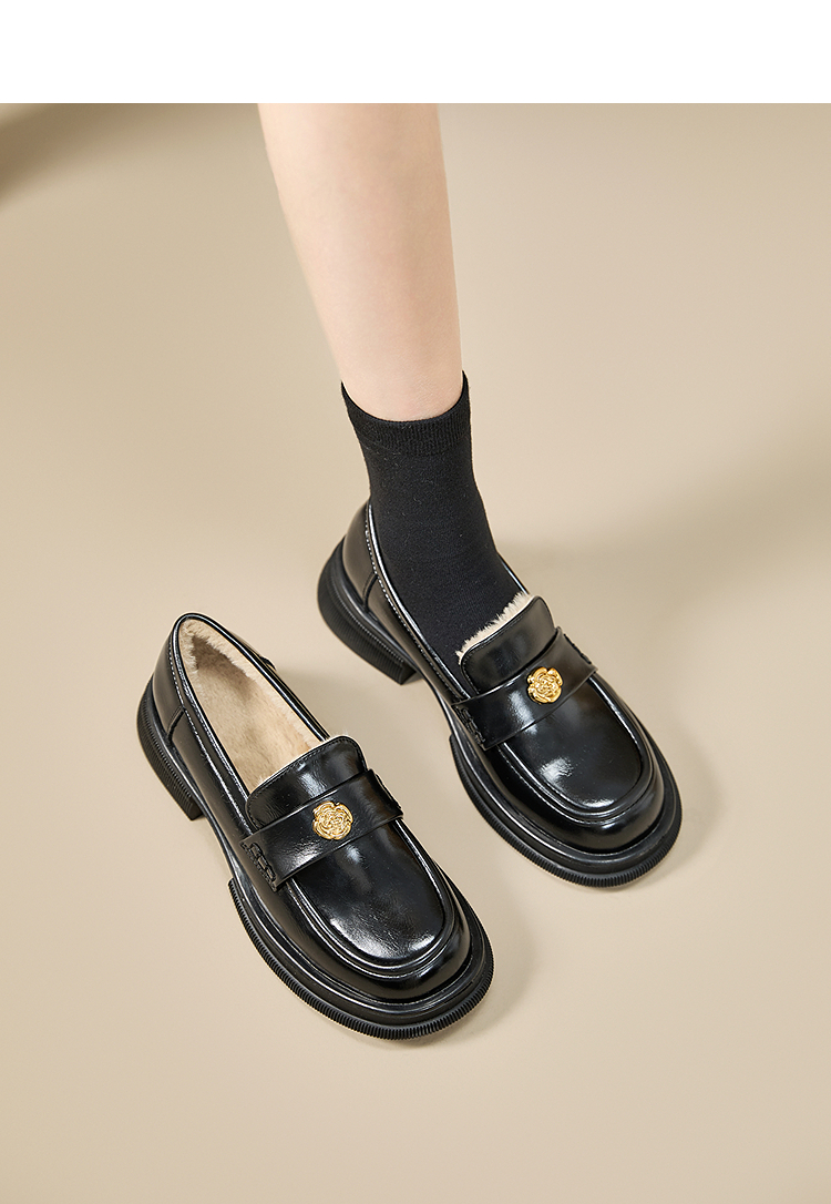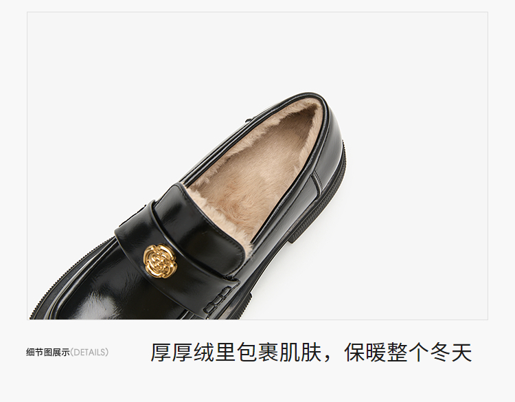 西遇山茶花加绒乐福鞋女冬季新款英伦复古百搭增高保暖小皮鞋V2457315