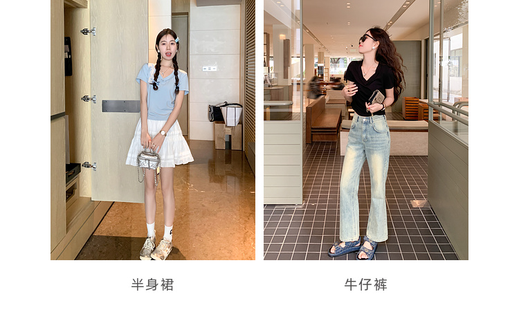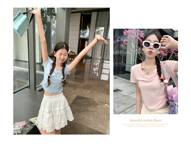 <曾小咸推荐>【甜心少女】4色V领短袖T恤