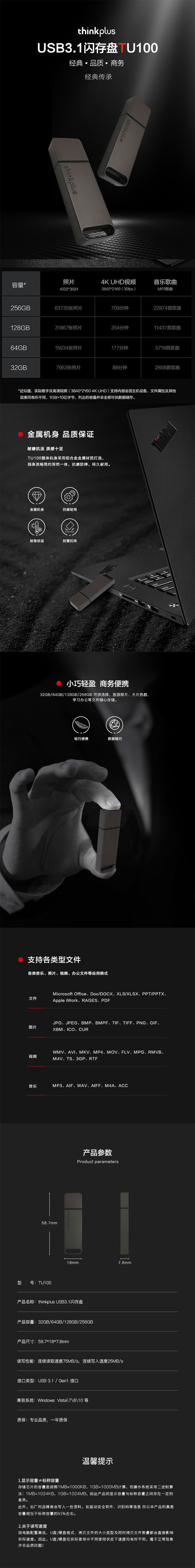thinkplus USB3.1闪存盘TU100(128G/256G/512G/1TB)