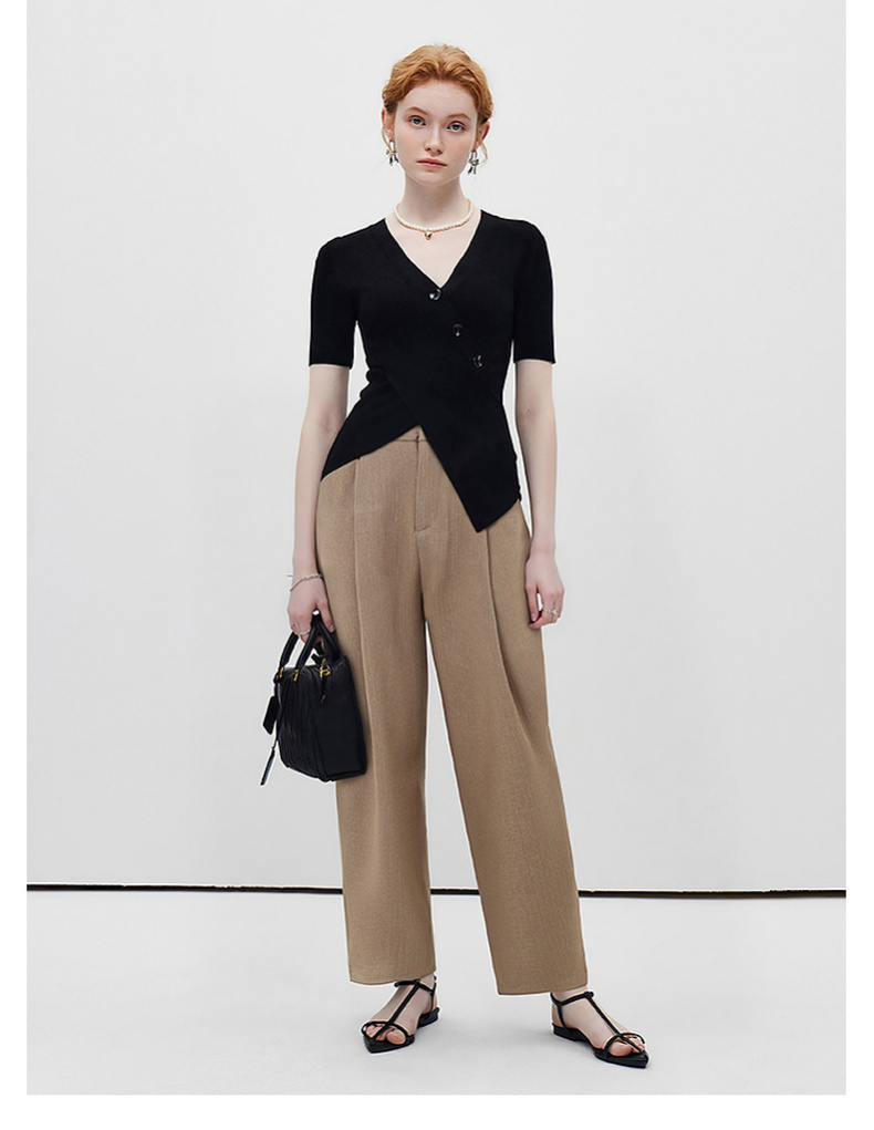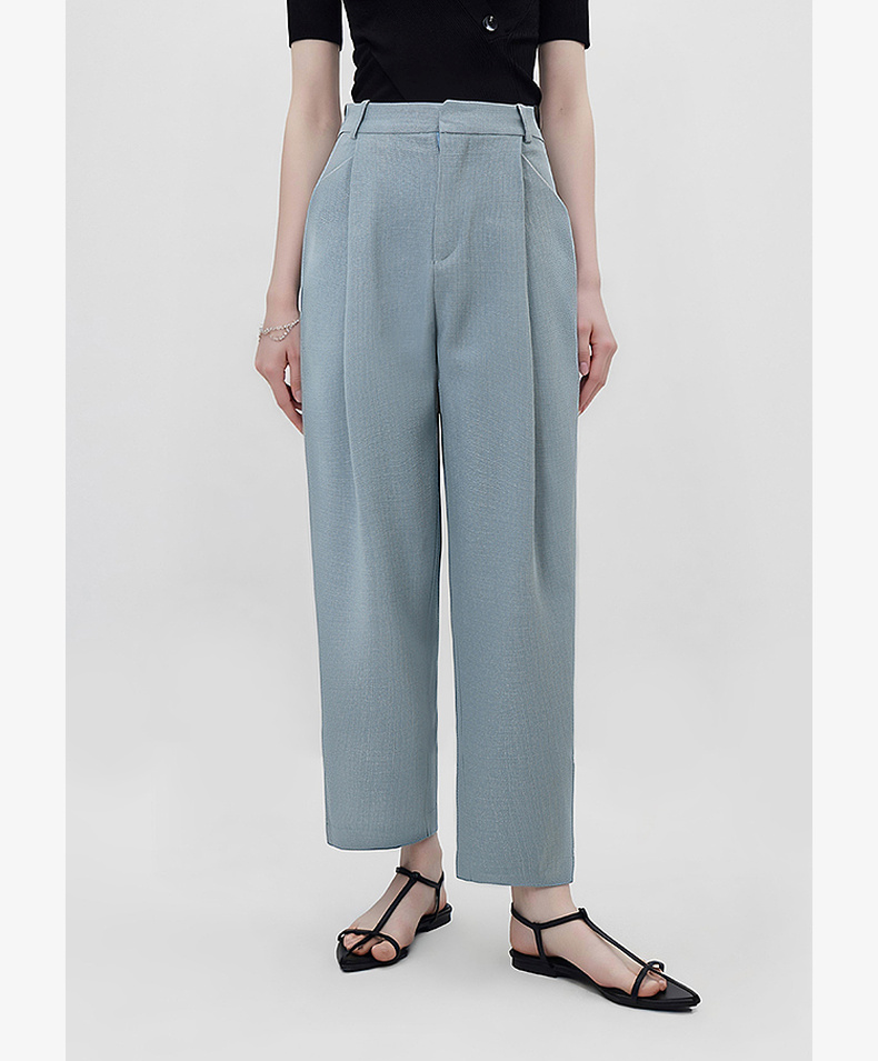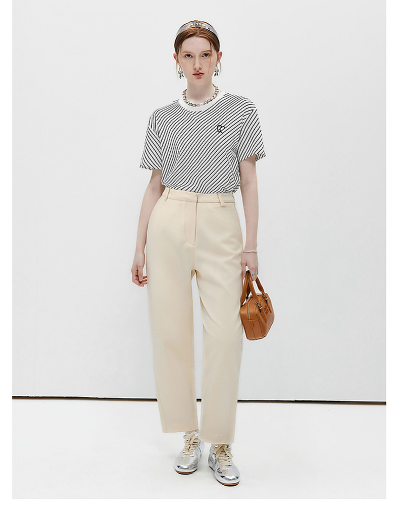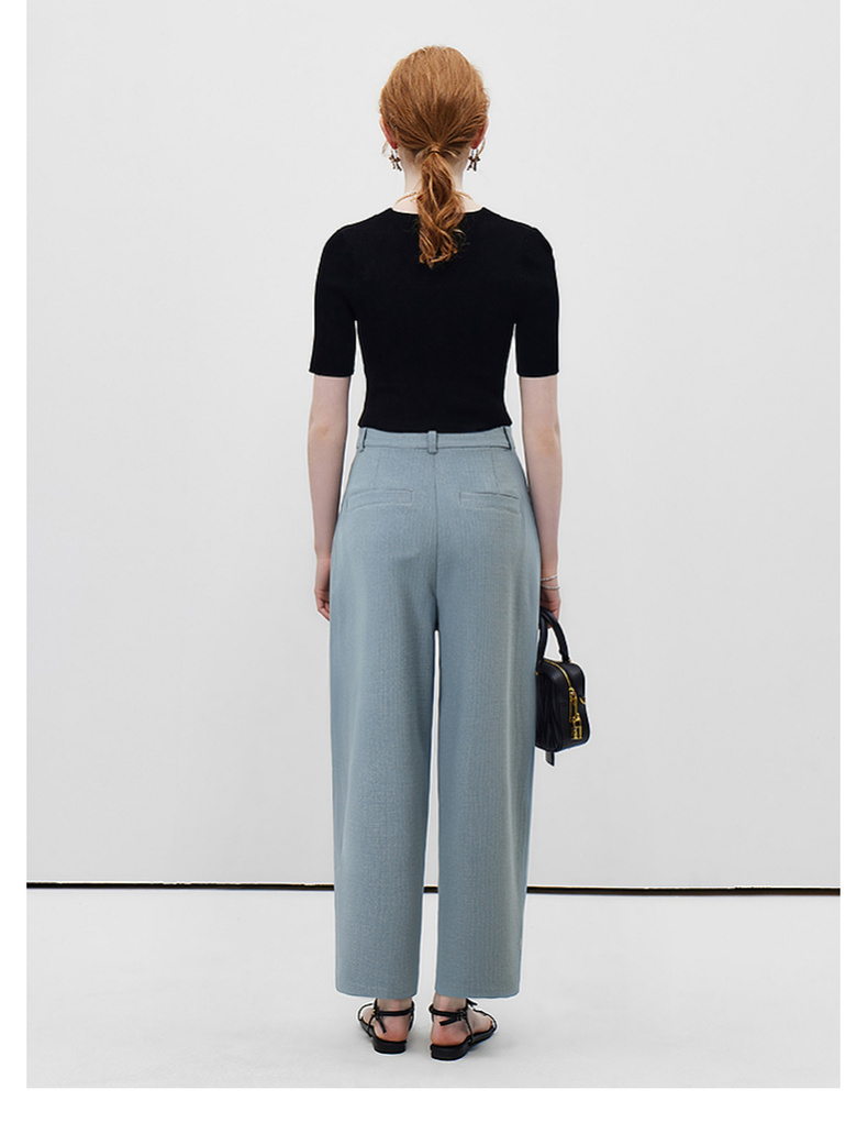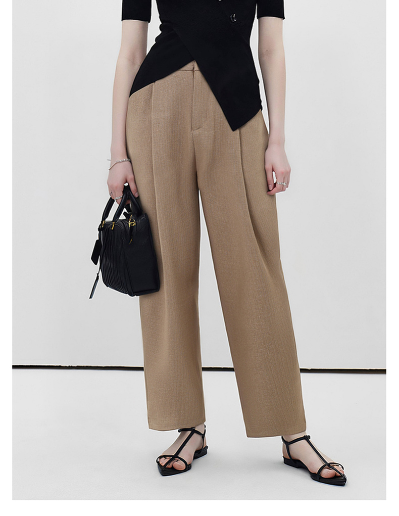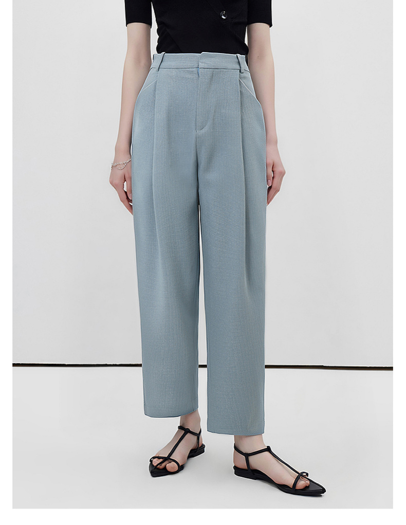 拉夏贝尔/La Chapelle高腰显瘦直筒西装裤女通勤时尚小个子九分烟管裤