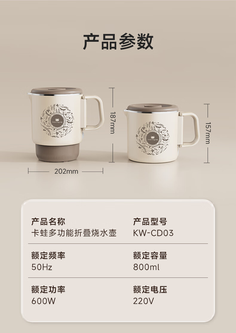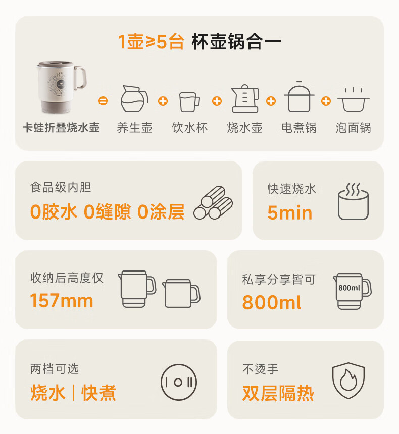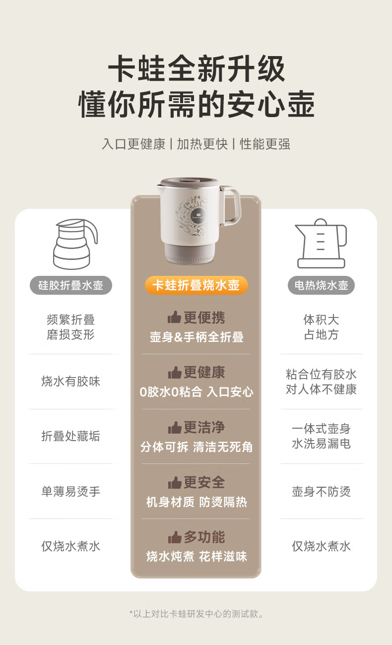 【多样屋专柜】卡蛙便携式烧水壶折叠电热水壶800ml