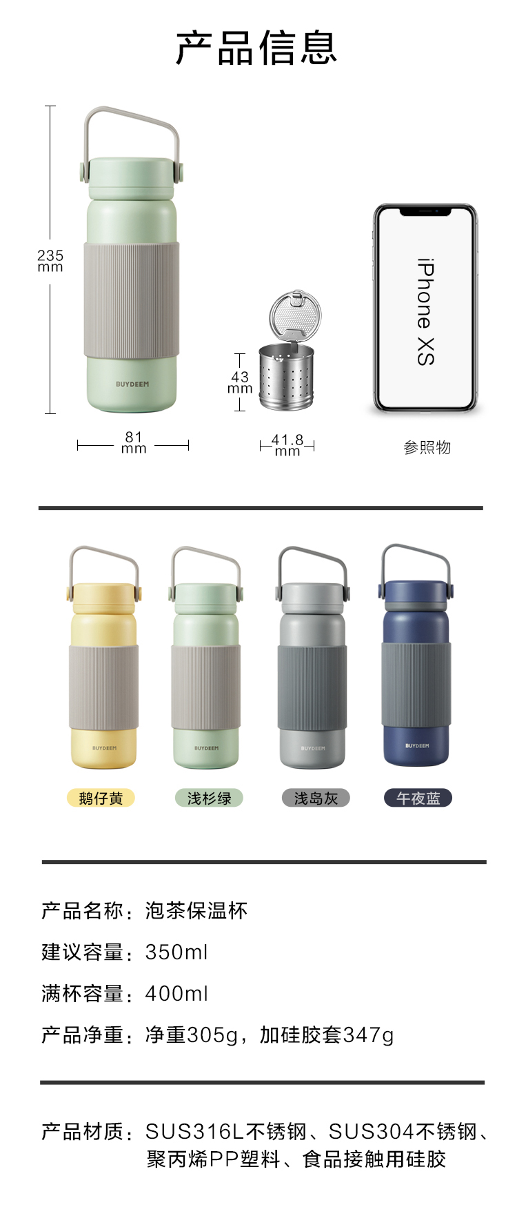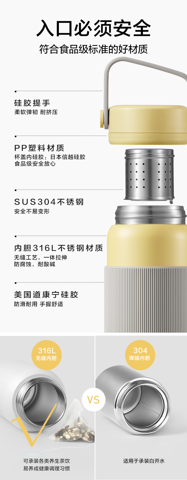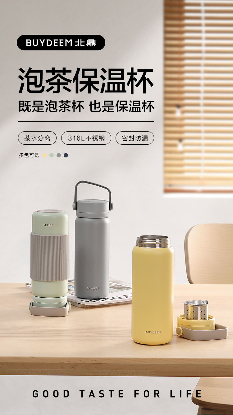 【专柜-北鼎】北鼎保温杯保冷杯茶水分离泡茶杯子便携大容量学生316不锈钢杯男女