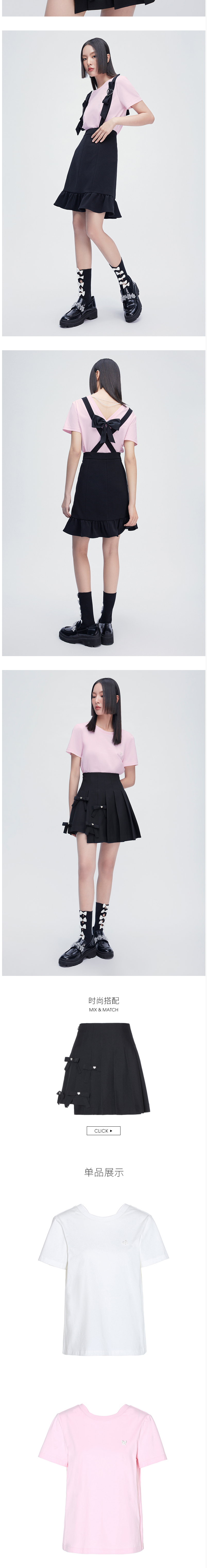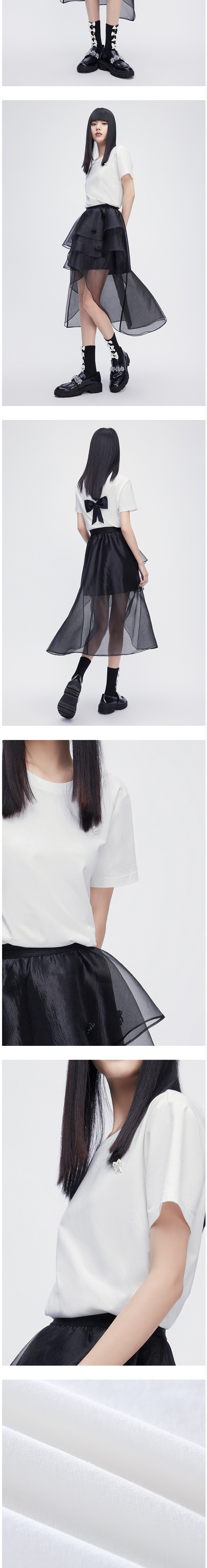 FIVE PLUS2022新款女夏装设计感蝴蝶结T恤女短袖宽松小露背上衣潮2WN2021210