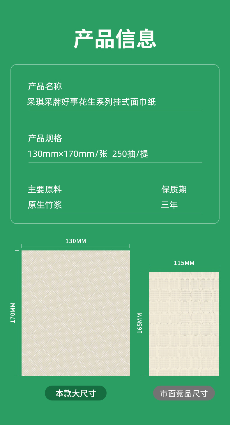 采琪采好事花生系列挂式本色悬挂式抽纸 臻柔亲肤 厚韧可湿水