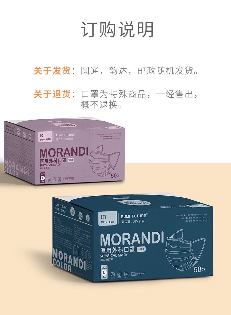【限时折扣】莫兰迪一次性口罩50只(浩瀚蓝/金叶黄/藕粉/幽兰紫/浮生若梦/月落星沉/蜜桃奶茶/拿铁灰)