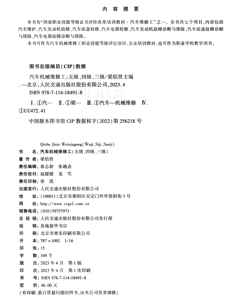 书名:汽车机械维修工(五级、四级、三级)