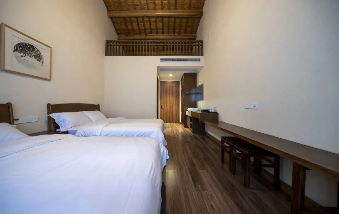 传统徽派建筑结合现代中式装修风格,木雕精湛,内外兼修,与查济古建筑群相映成辉。