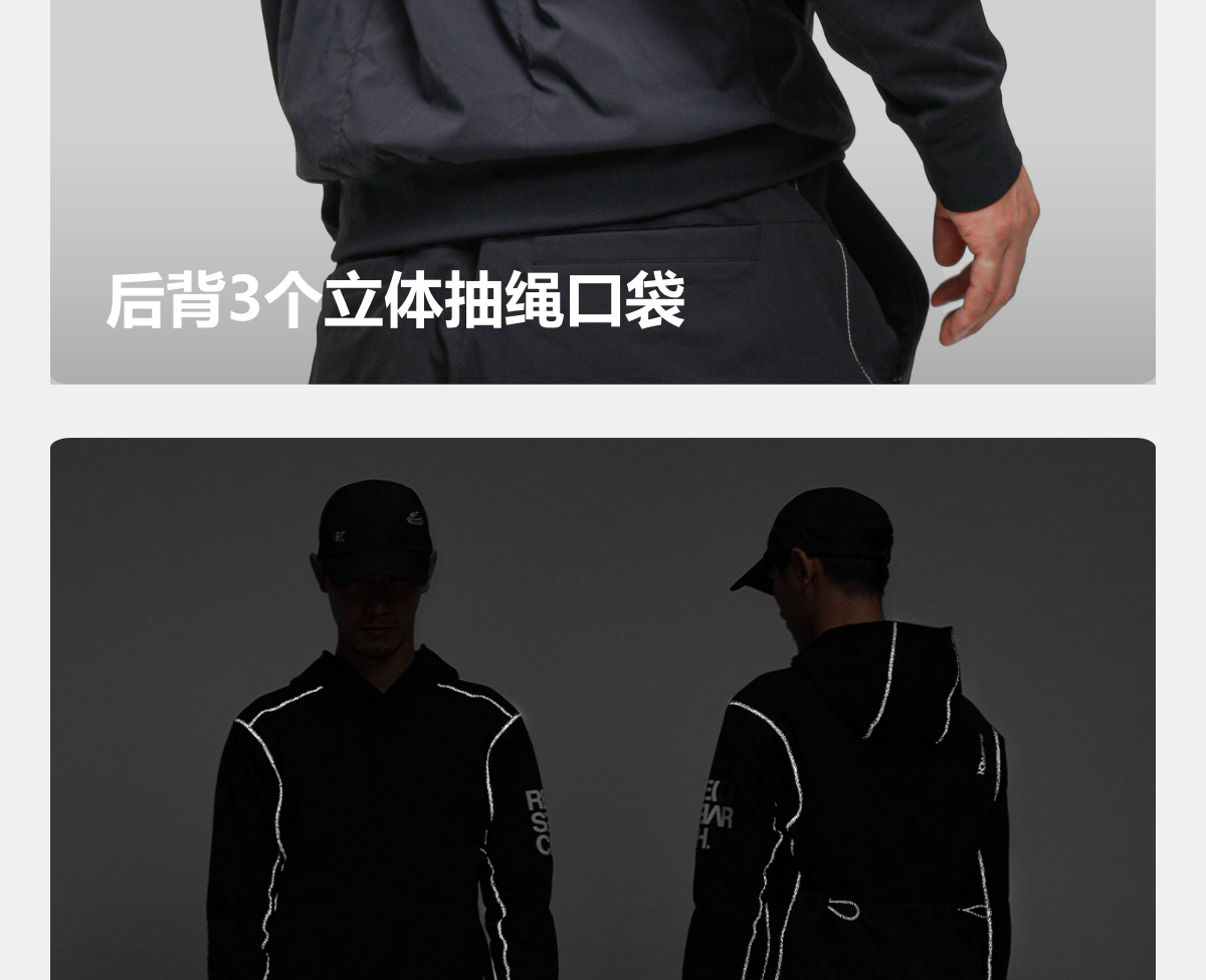 GRC桀骜无尽新款RESEARCH秋冬季反光透气运动套头连帽卫衣男女款