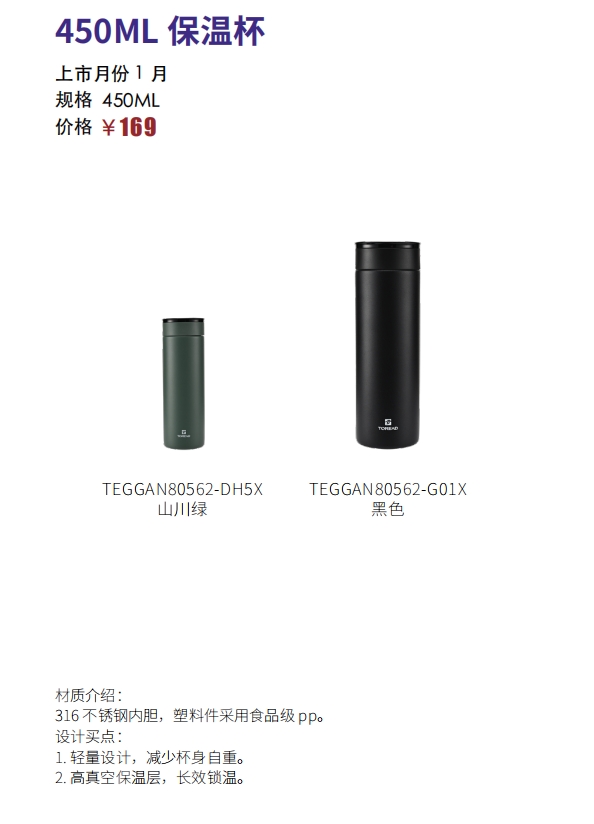 探路者450ML保温杯TEGGAN80562