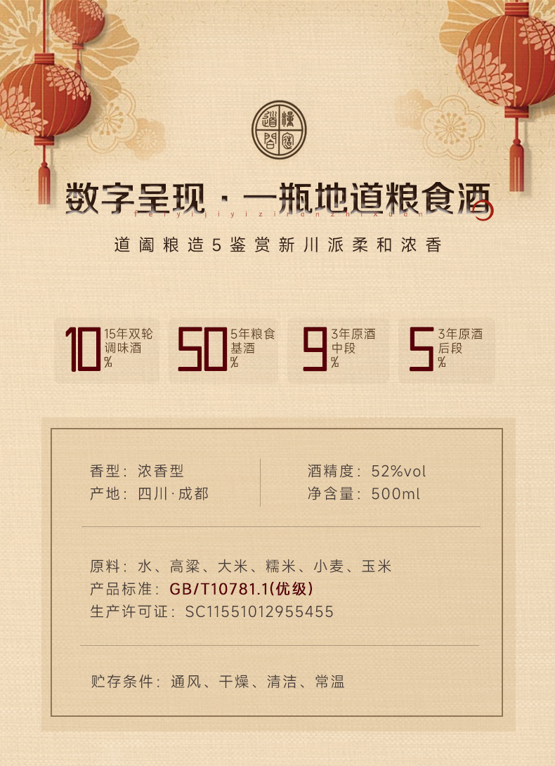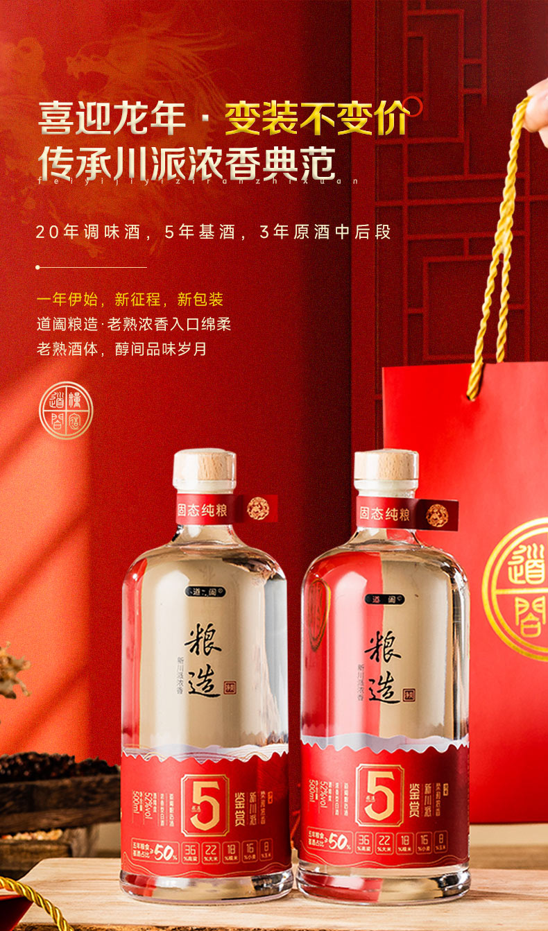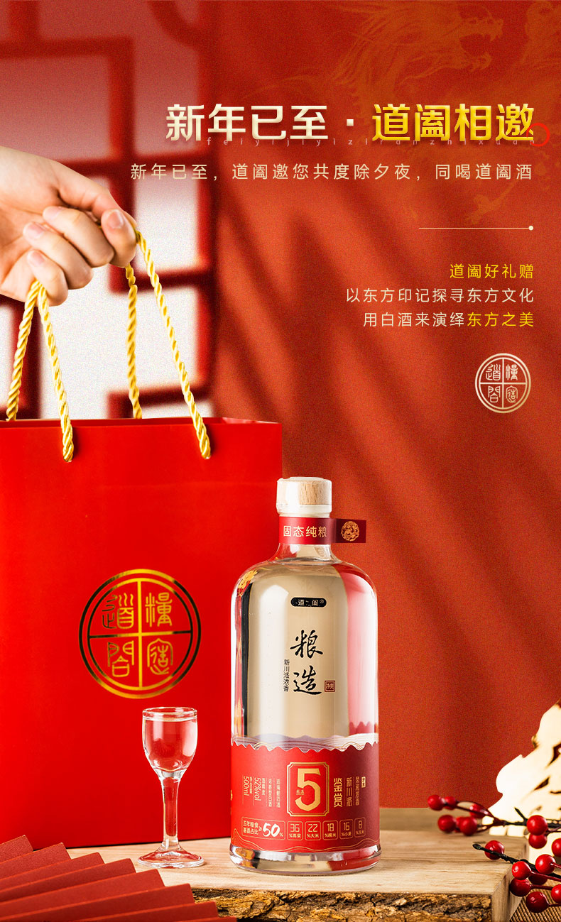【吉祥贺岁 爆品特别鉴赏版】道阖粮造5鉴赏 新春贺岁版 52%VOL 双轮发酵 新川派浓香典范