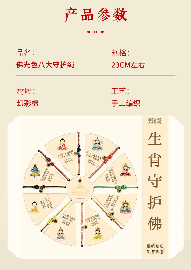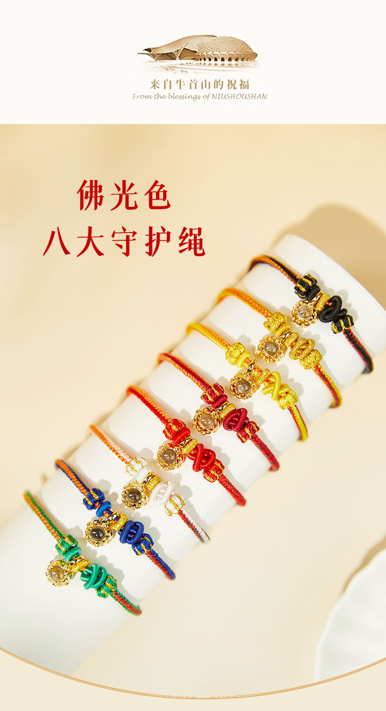 牛首山文创佛光色八大守护绳新品生肖红绳手链情侣手工编织红手绳