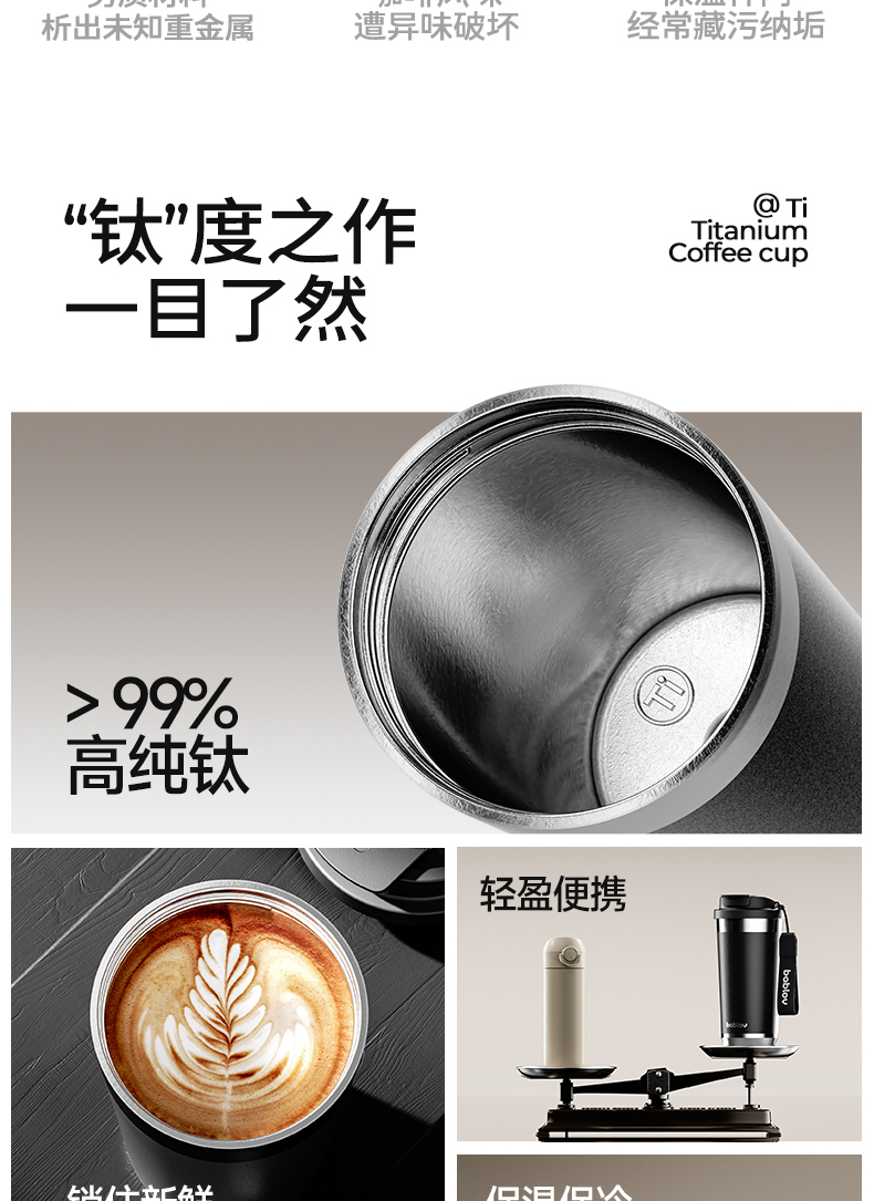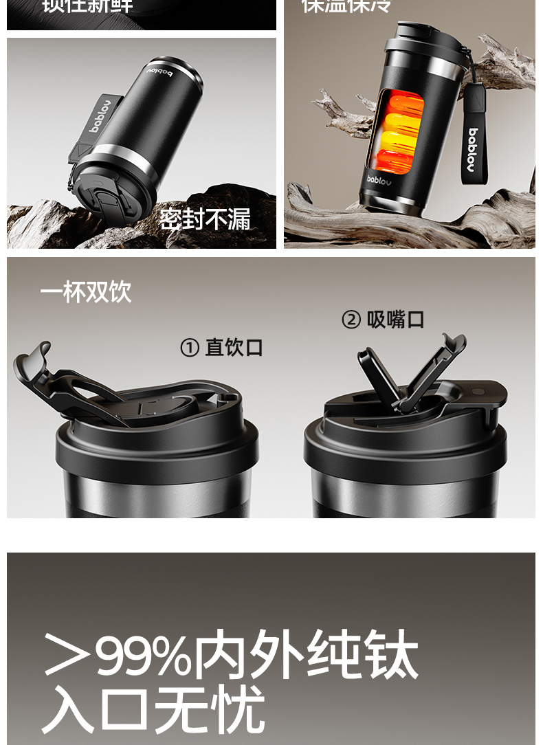 bablov纯钛保温杯咖啡杯便携水杯车载杯子2025新款钛杯圣诞礼物