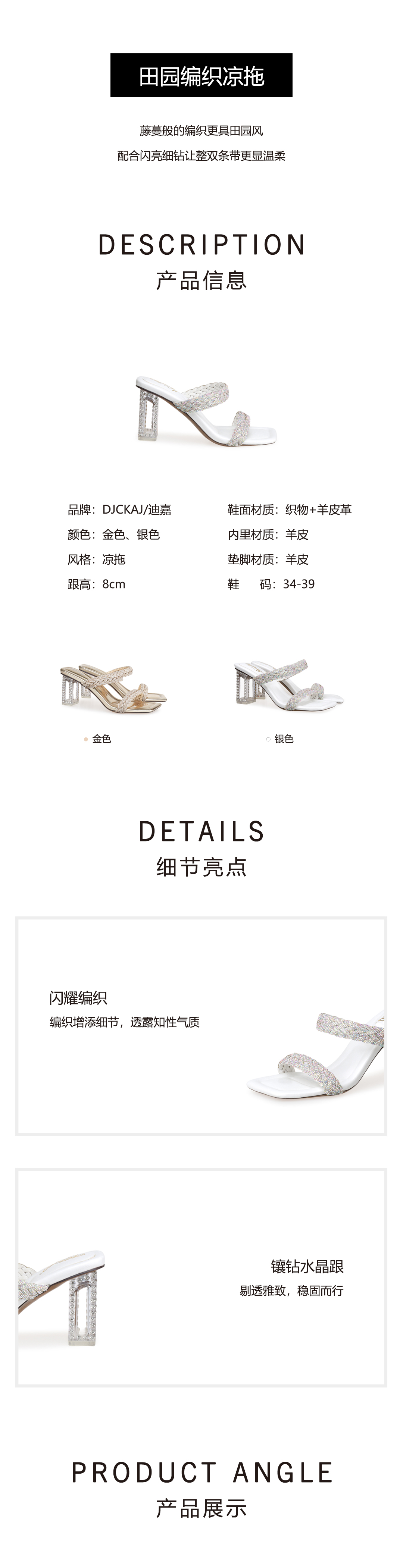 豪麟名鞋迪嘉女鞋凉拖织物+羊皮革DJYYA51WL023银色