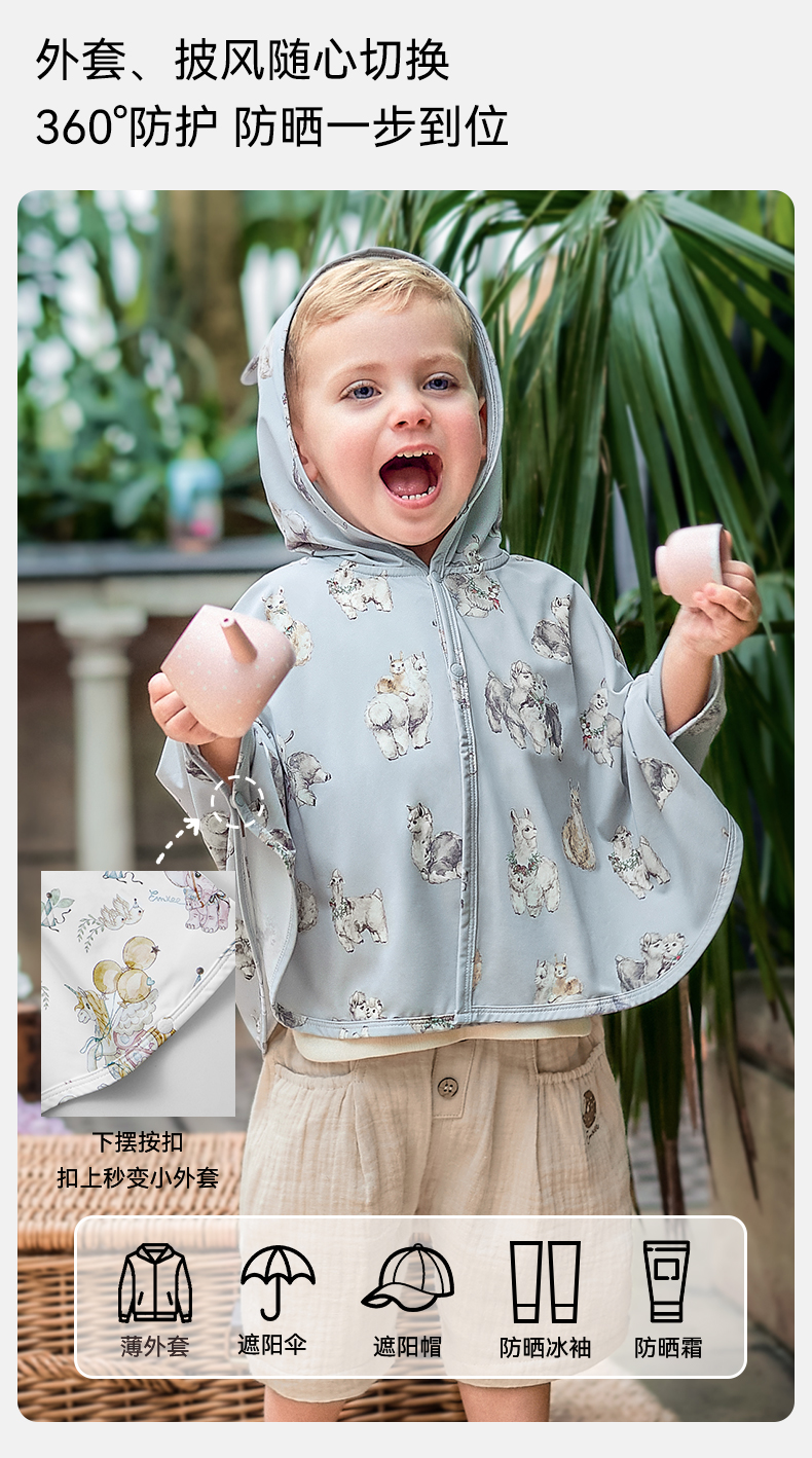 【婴童防晒】嫚熙童装防晒衣宝宝新款外套儿童婴儿防晒斗篷夏