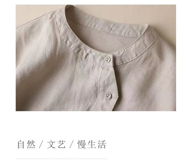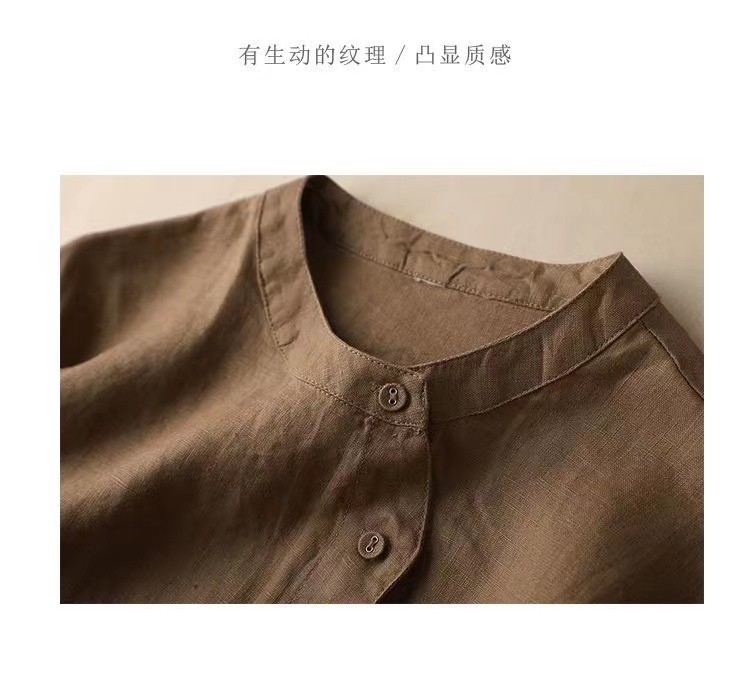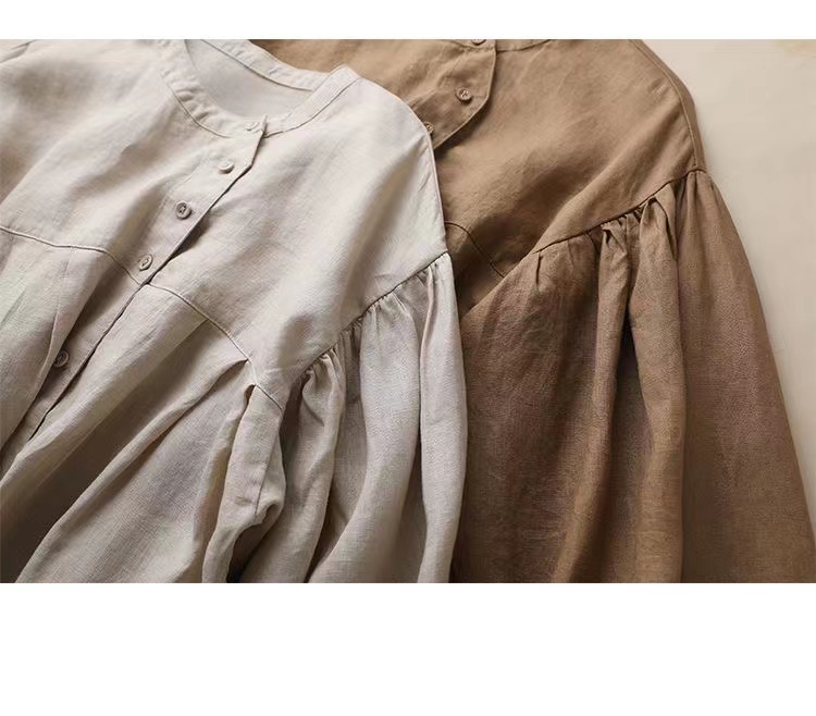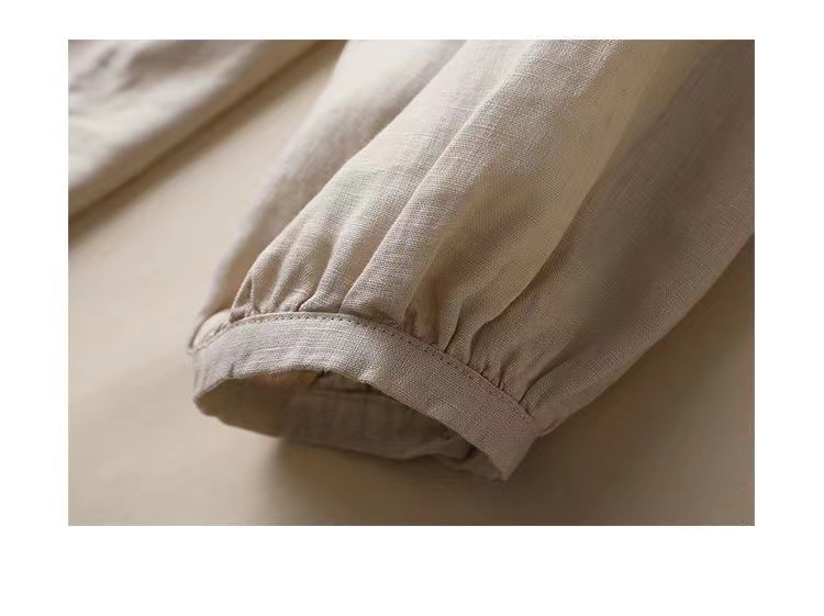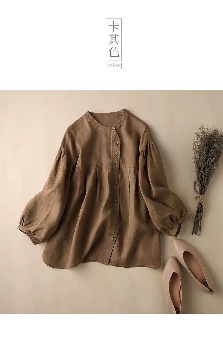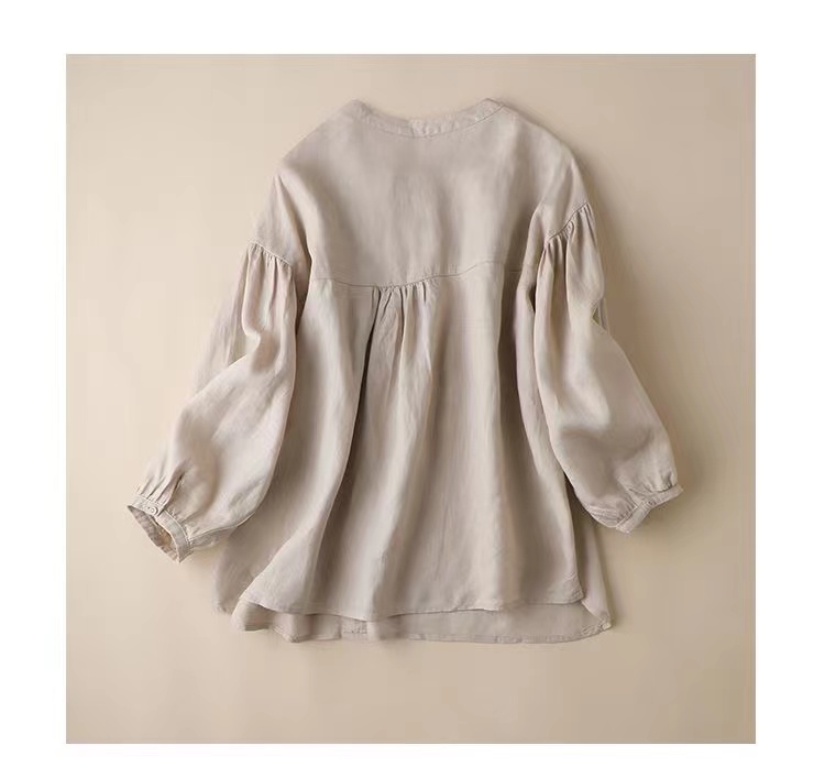 2025新款纯色灯笼袖棉麻衬衣女宽松娃娃小衫设计感九分袖时尚衬衫