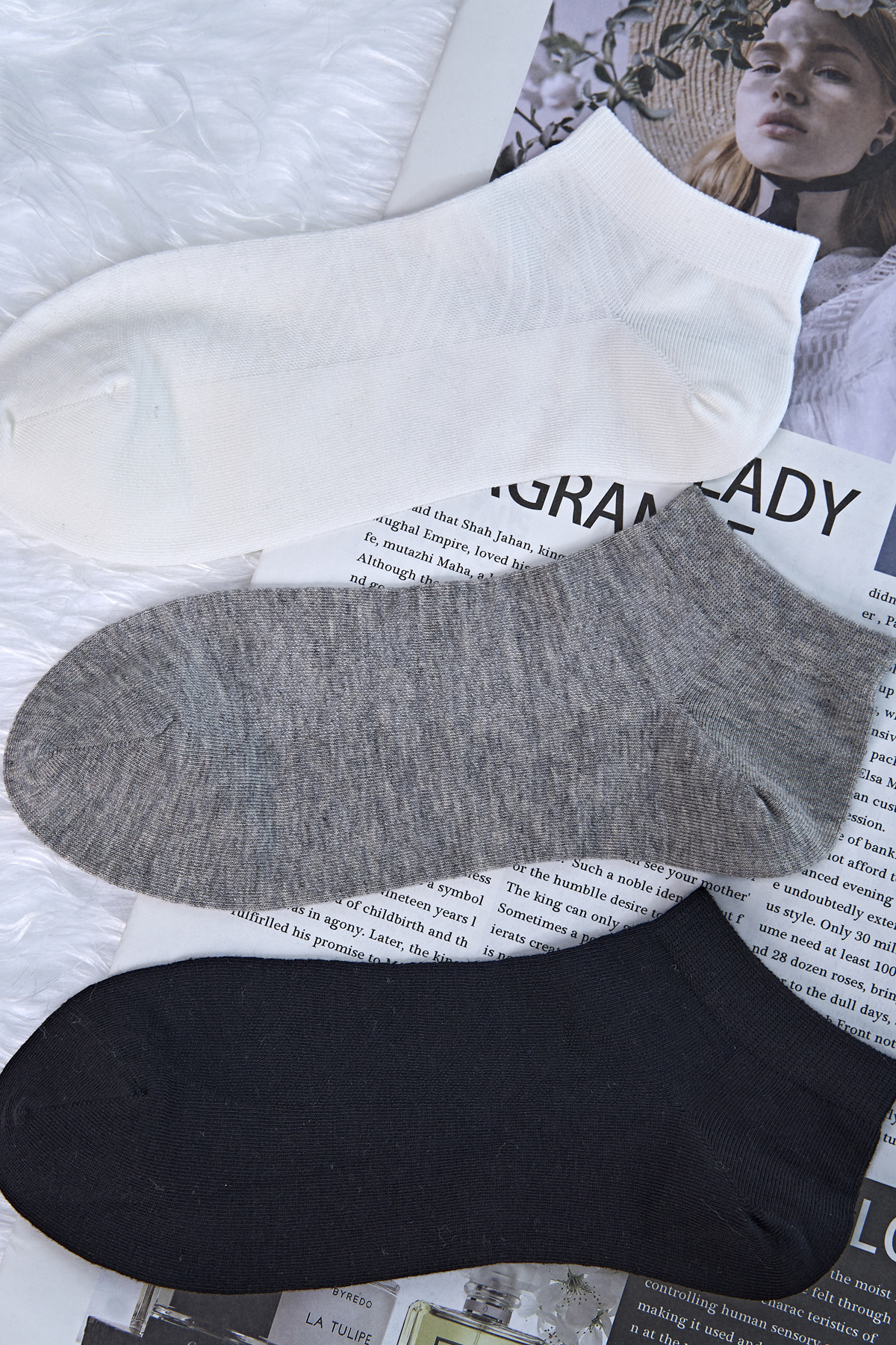 【6双6折】女士棉麻夏季船袜纯色短筒袜薄袜子女士袜子【2双装 2512306】